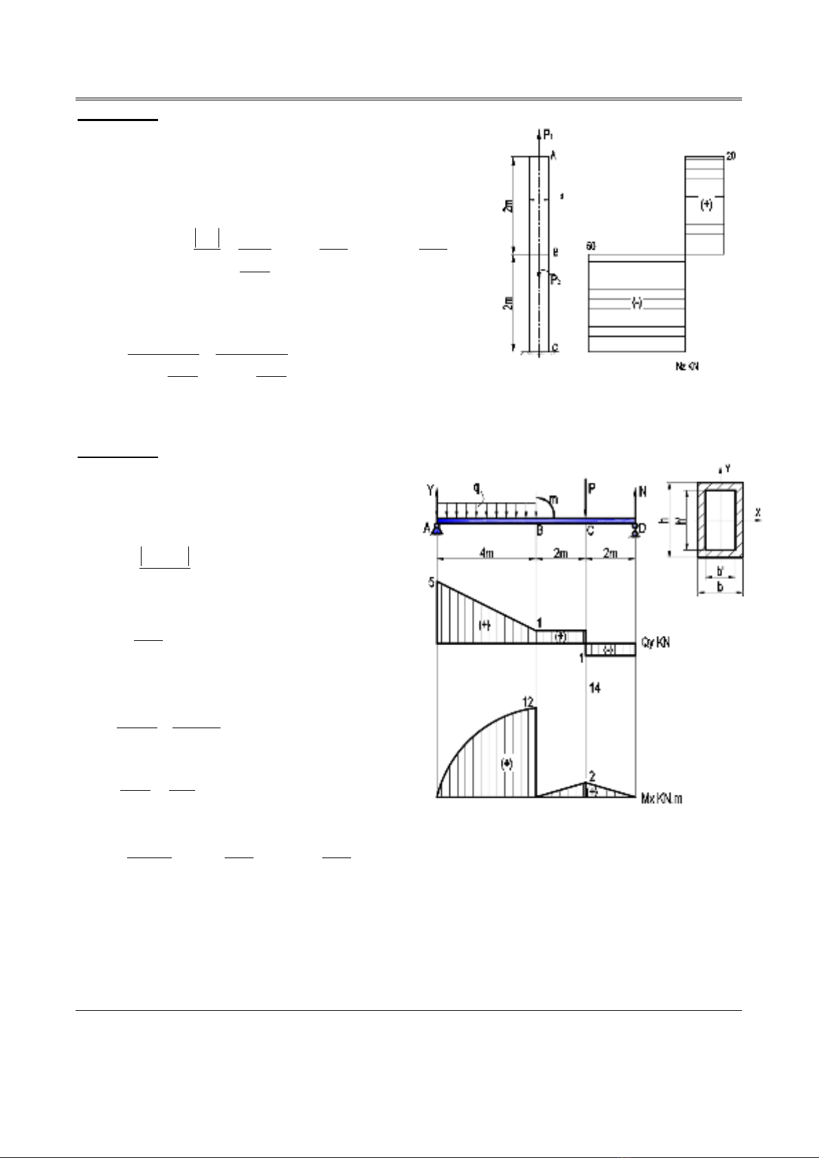 Bài 1: (3đ) Cho thanh AC chịu kéo nén đúng tâm như hình với các tải trọng