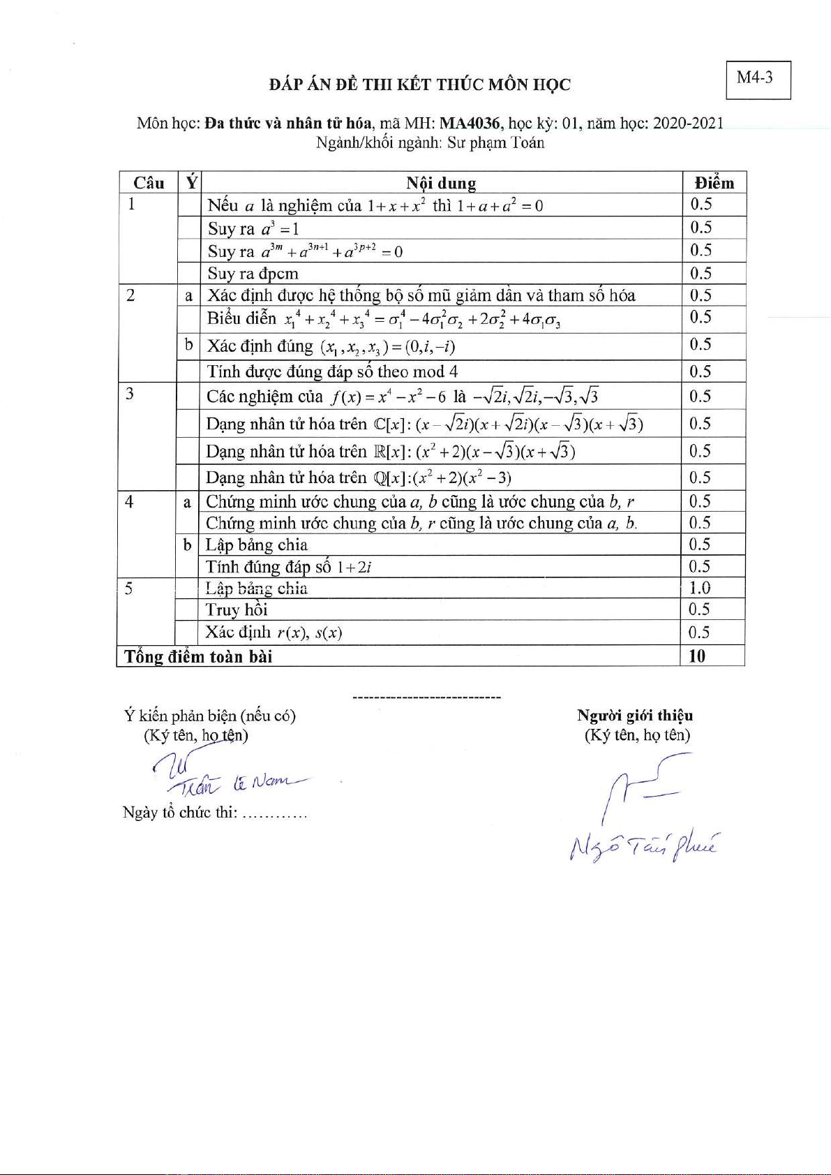 Đề thi kết thúc học phần học kì 1 môn Đa thức và nhân tử hóa năm 2020-2021 có đáp án - Trường ĐH Đồng Tháp