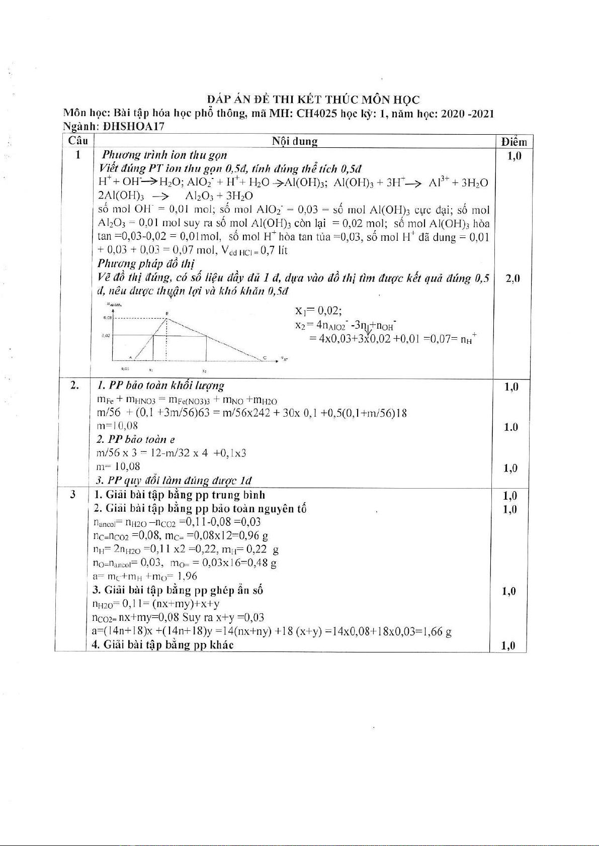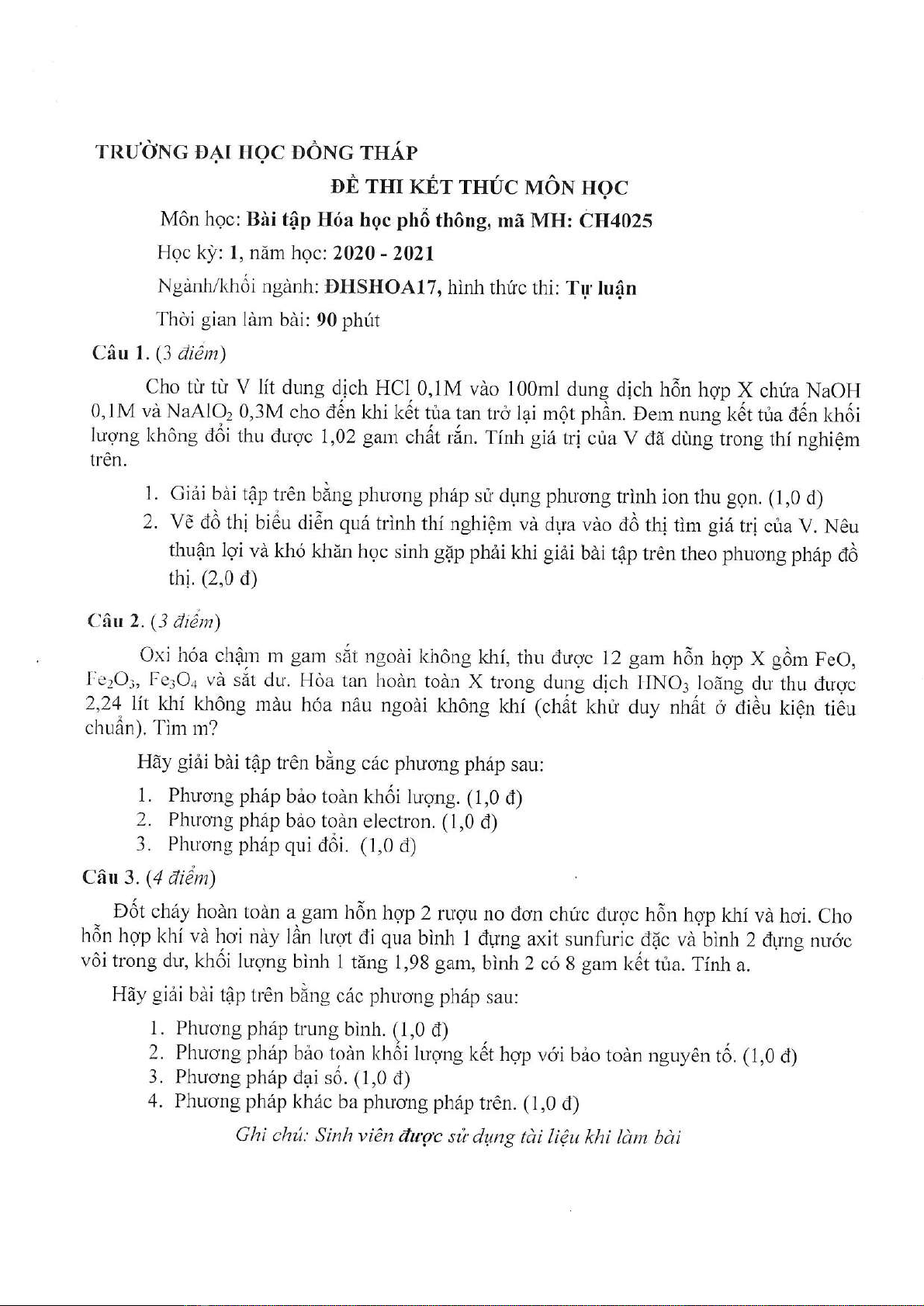 Đề thi kết thúc học phần học kì 1 môn Bài tập hóa học phổ thông năm 2020-2021 có đáp án - Trường ĐH Đồng Tháp