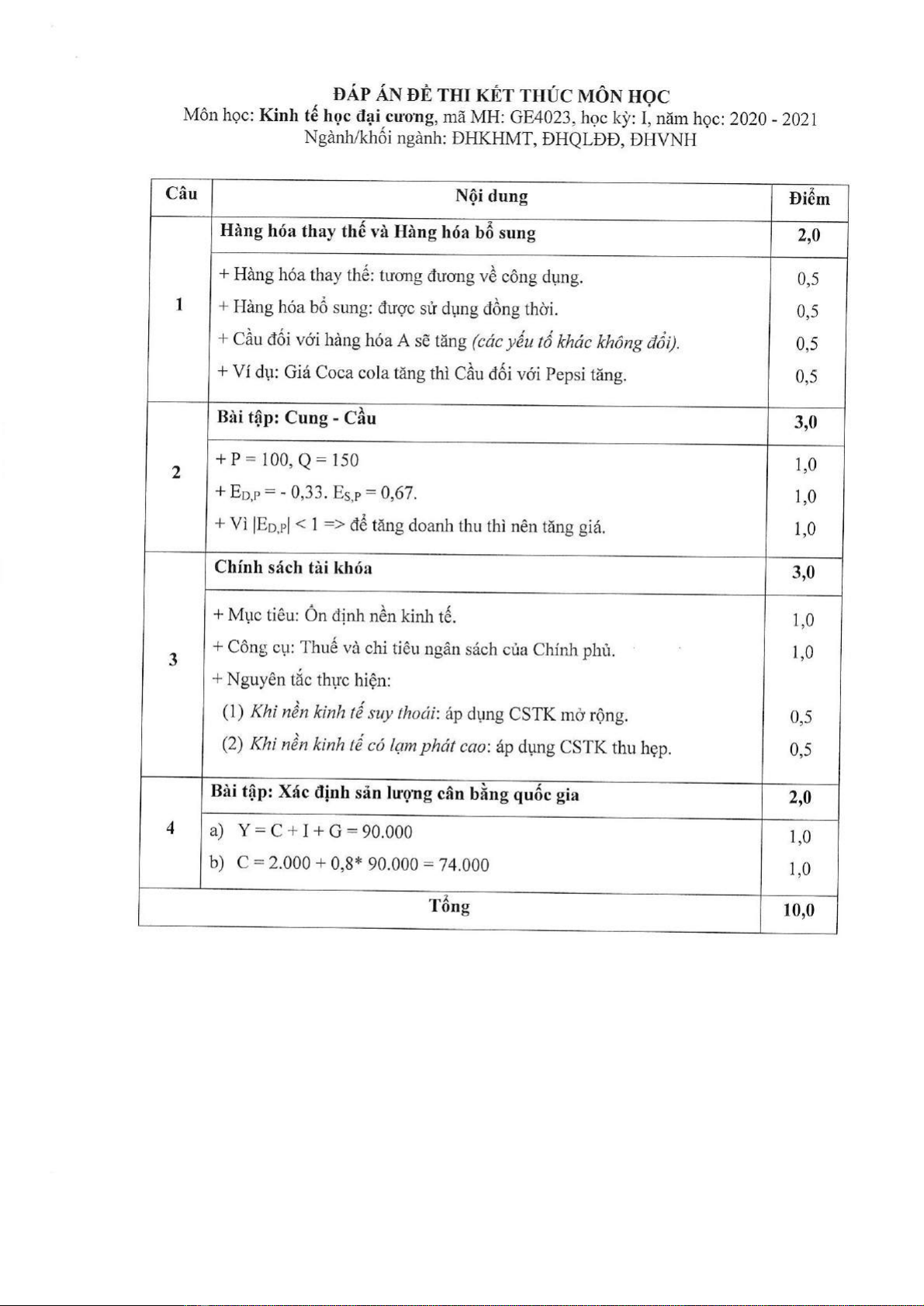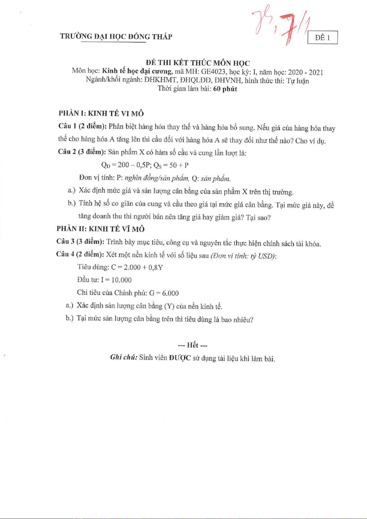 Đề thi kết thúc học phần học kì 1 môn Kinh tế học đại cương năm 2020-2021 có đáp án - Trường ĐH Đồng Tháp