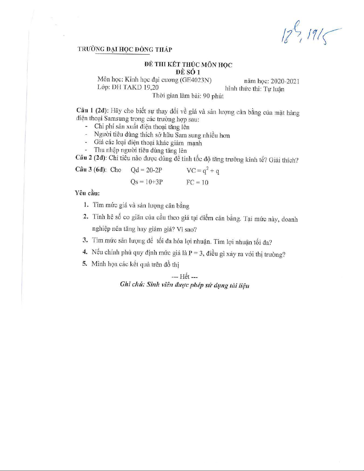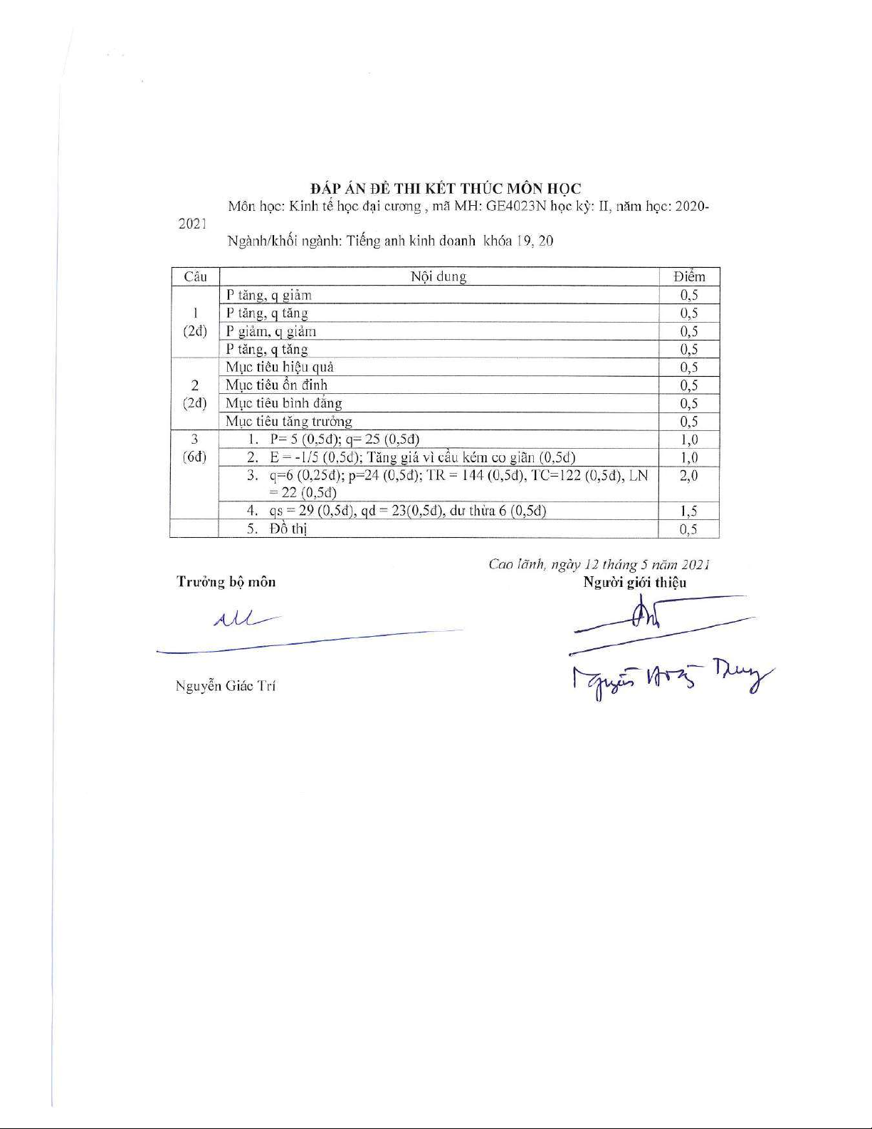 Đề thi kết thúc học phần học kì 2 môn Kinh tế học đại cương năm 2020-2021 có đáp án - Trường ĐH Đồng Tháp