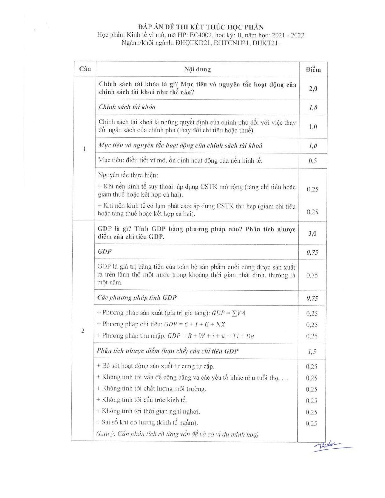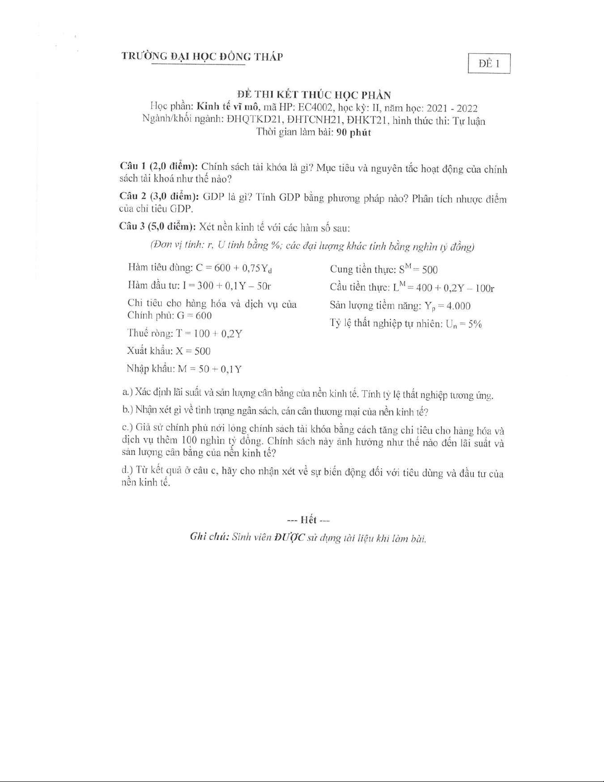 Đề thi kết thúc học phần học kì 2 môn Kinh tế vĩ mô năm 2021-2022 có đáp án - Trường ĐH Đồng Tháp