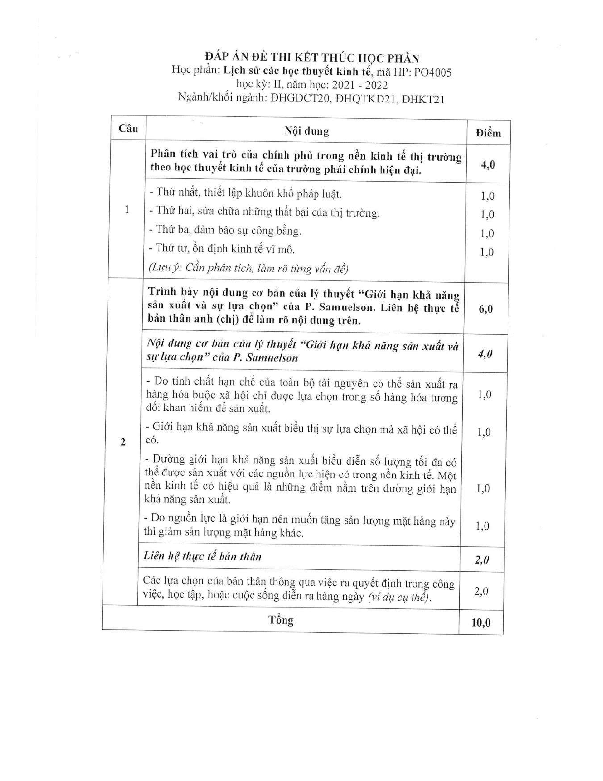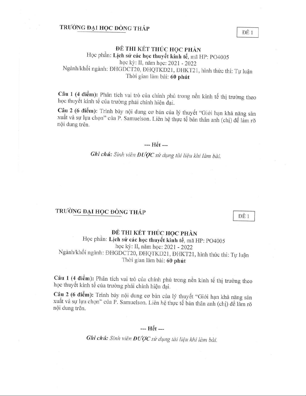 Đề thi kết thúc học phần học kì 2 môn Lịch sử các học thuyết kinh tế năm 2021-2022 có đáp án - Trường ĐH Đồng Tháp