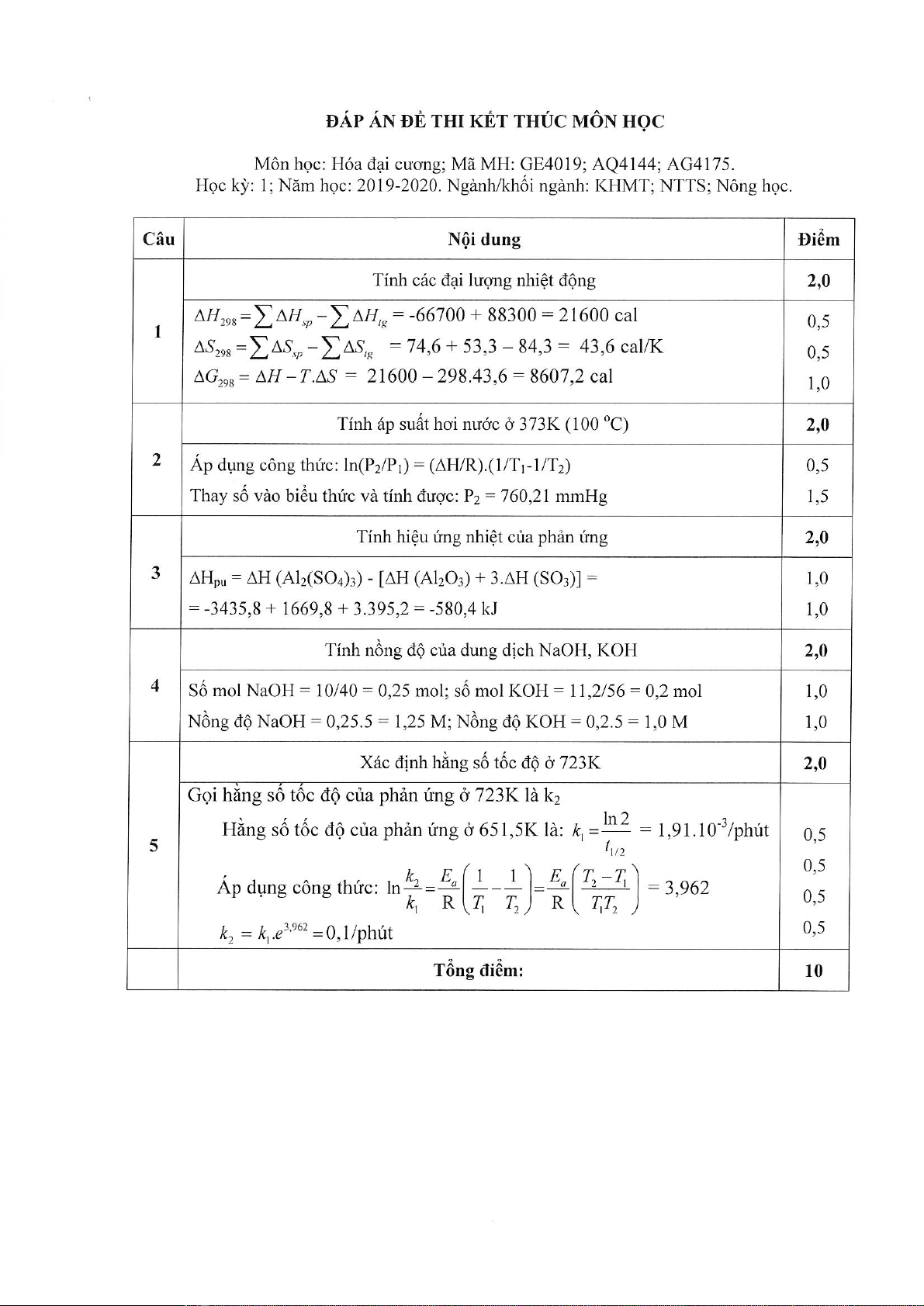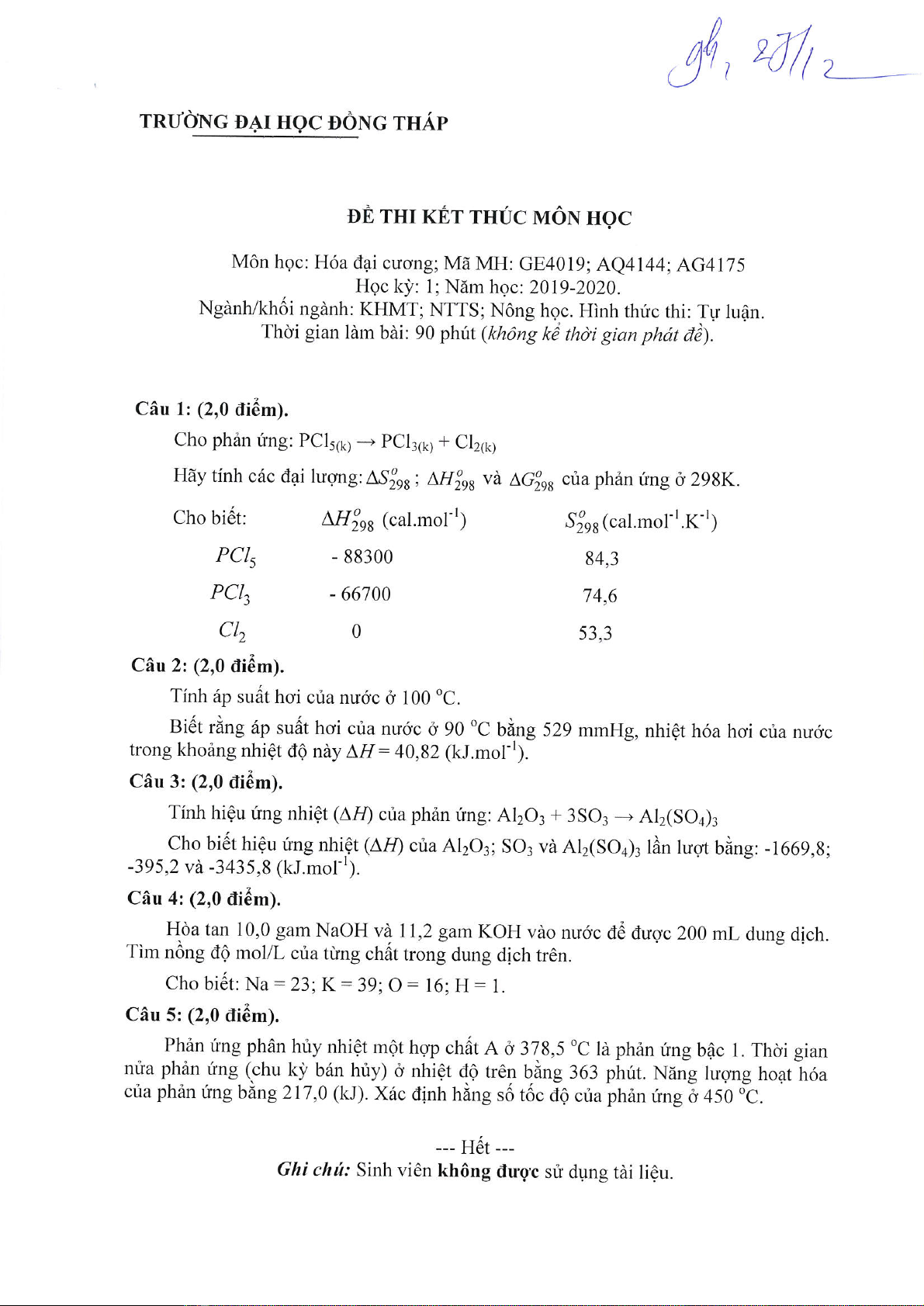 Đề thi kết thúc học phần học kì 1 môn Lý luận và phương pháp giảng dạy môn Hóa đại cương năm 2019-2020 có đáp án - Trường ĐH Đồng Tháp