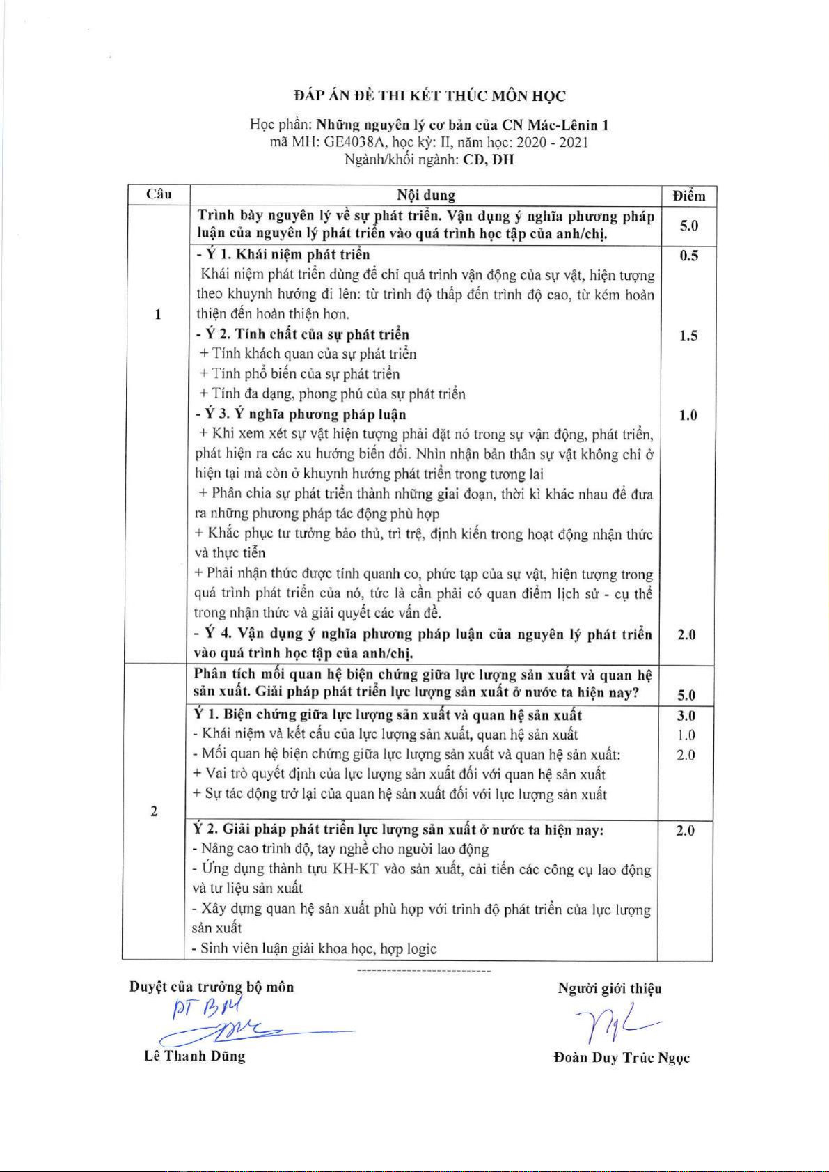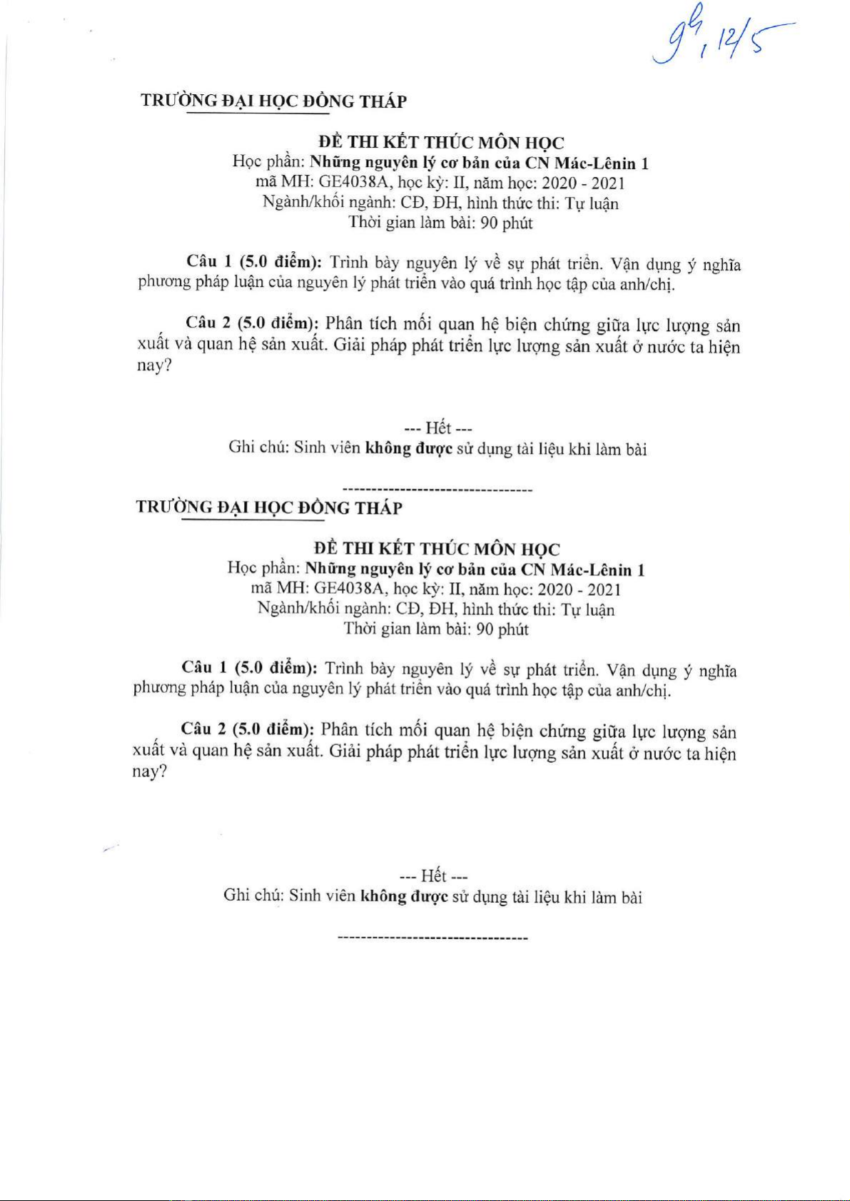 Đề thi kết thúc học phần học kì 2 môn Những nguyên lý cơ bản của Chủ nghĩa Mac-Lenin 1 năm 2020-2021 có đáp án - Trường ĐH Đồng Tháp