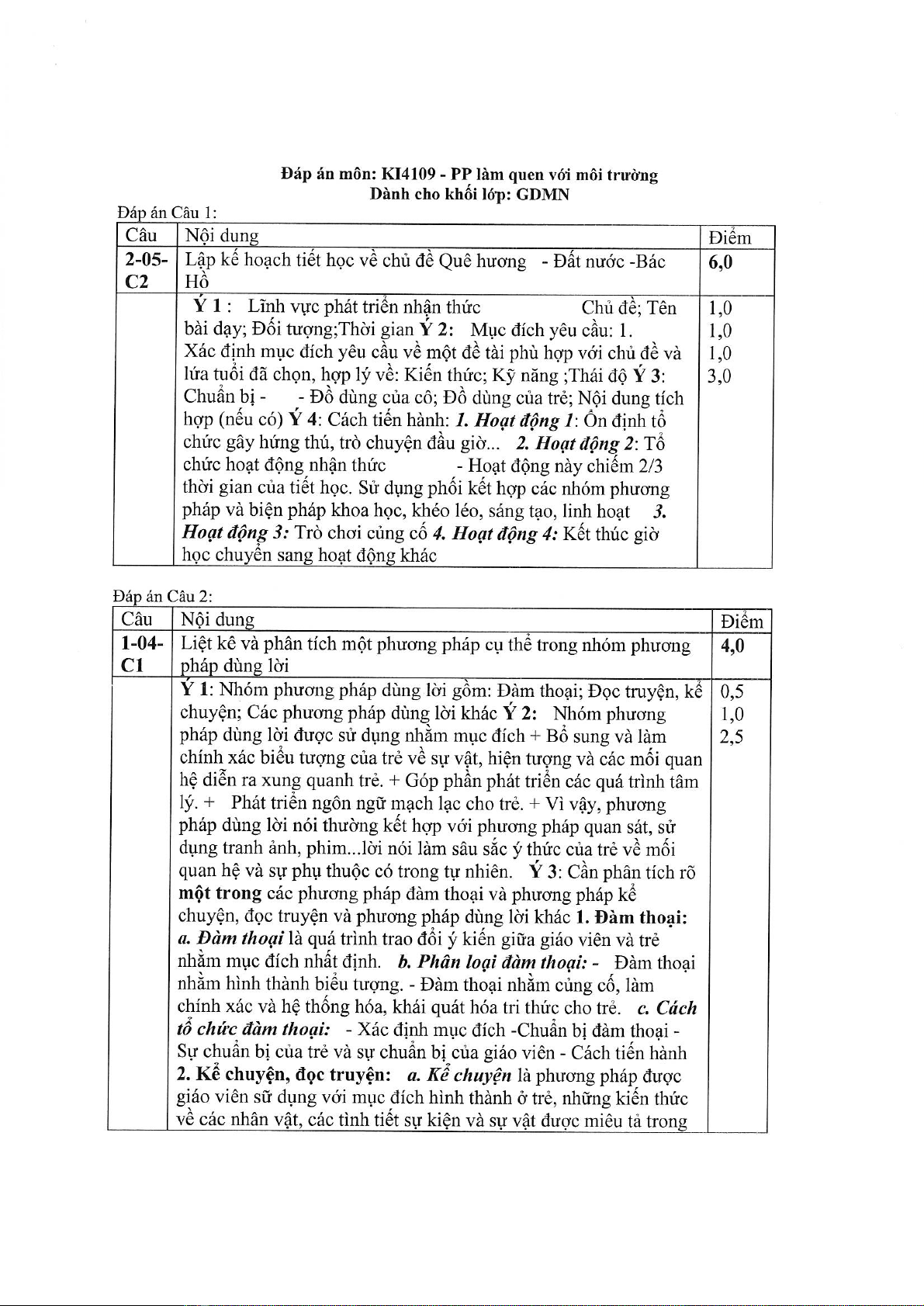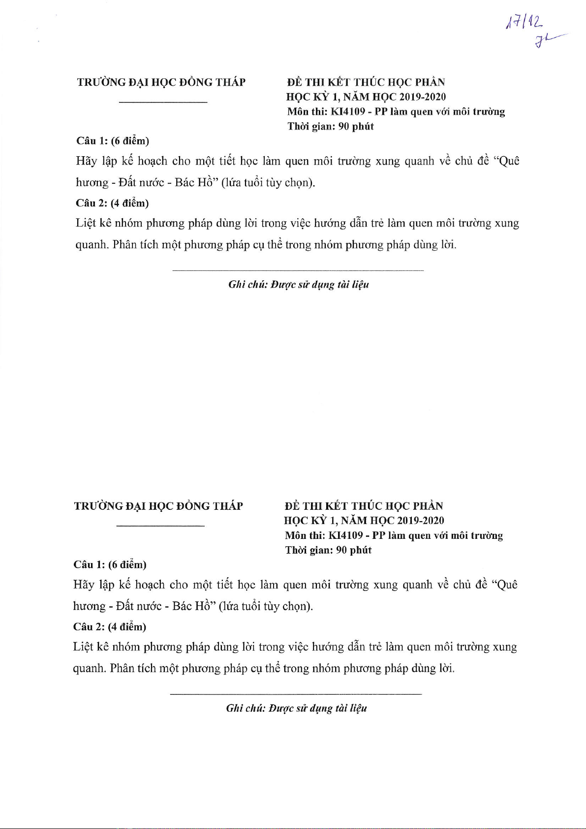 Đề thi kết thúc học phần học kì 1 môn Phương pháp làm quen với môi trường năm 2019-2020 có đáp án - Trường ĐH Đồng Tháp