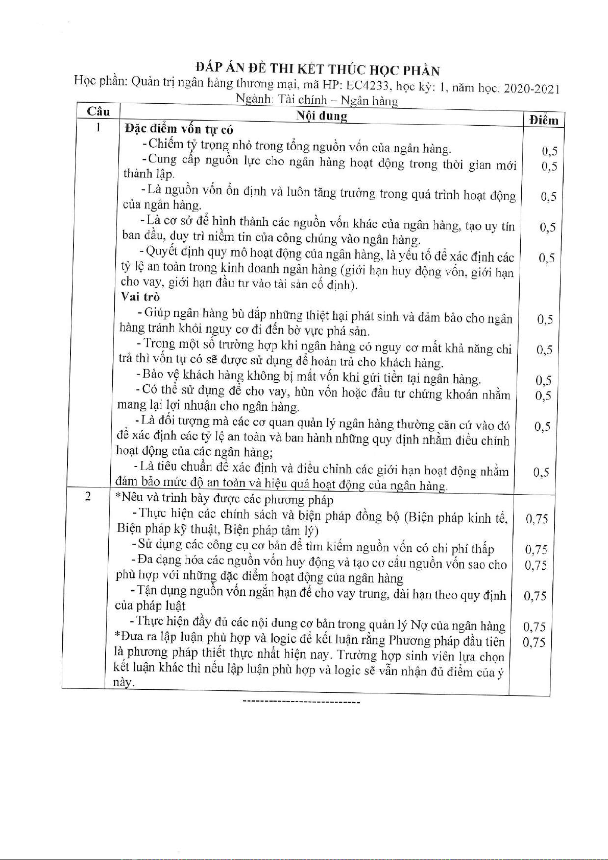 Đề thi kết thúc học phần học kì 1 môn Quản trị ngân hàng thương mại năm 2020-2021 có đáp án - Trường ĐH Đồng Tháp