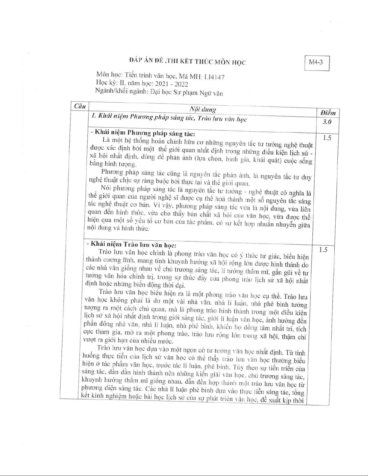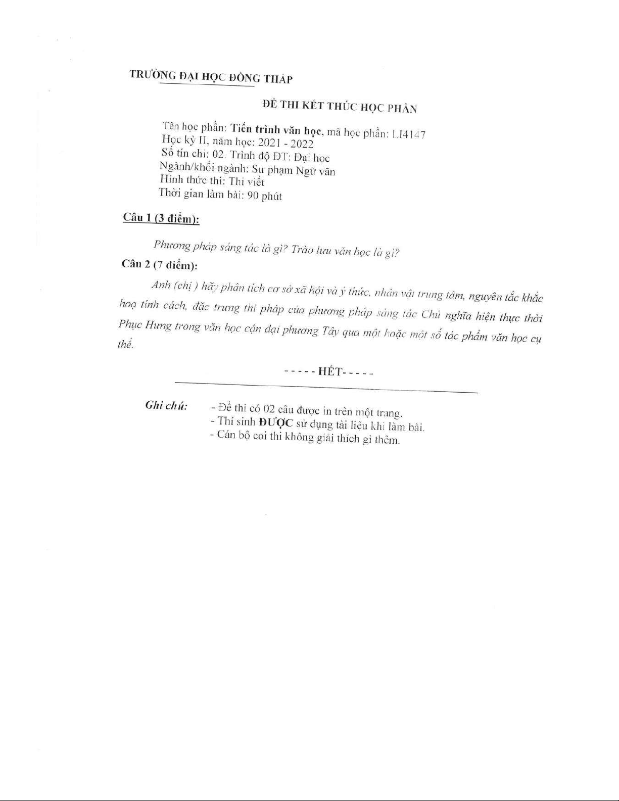 Đề thi kết thúc học phần học kì 2 môn Tiến trình văn học năm 2021-2022 có đáp án - Trường ĐH Đồng Tháp