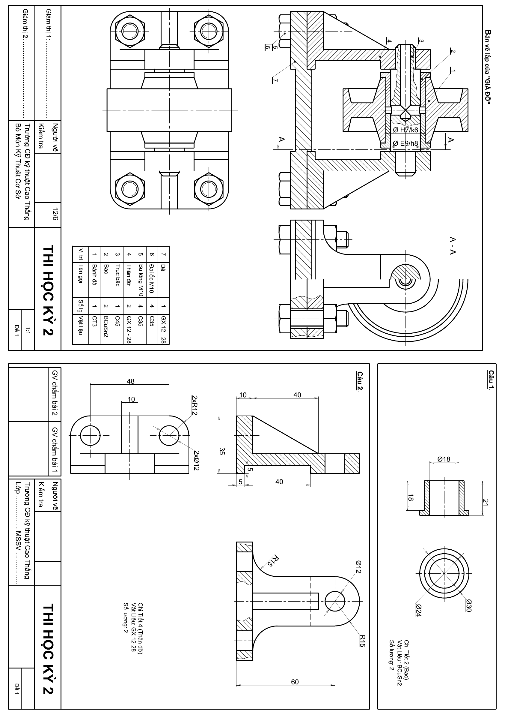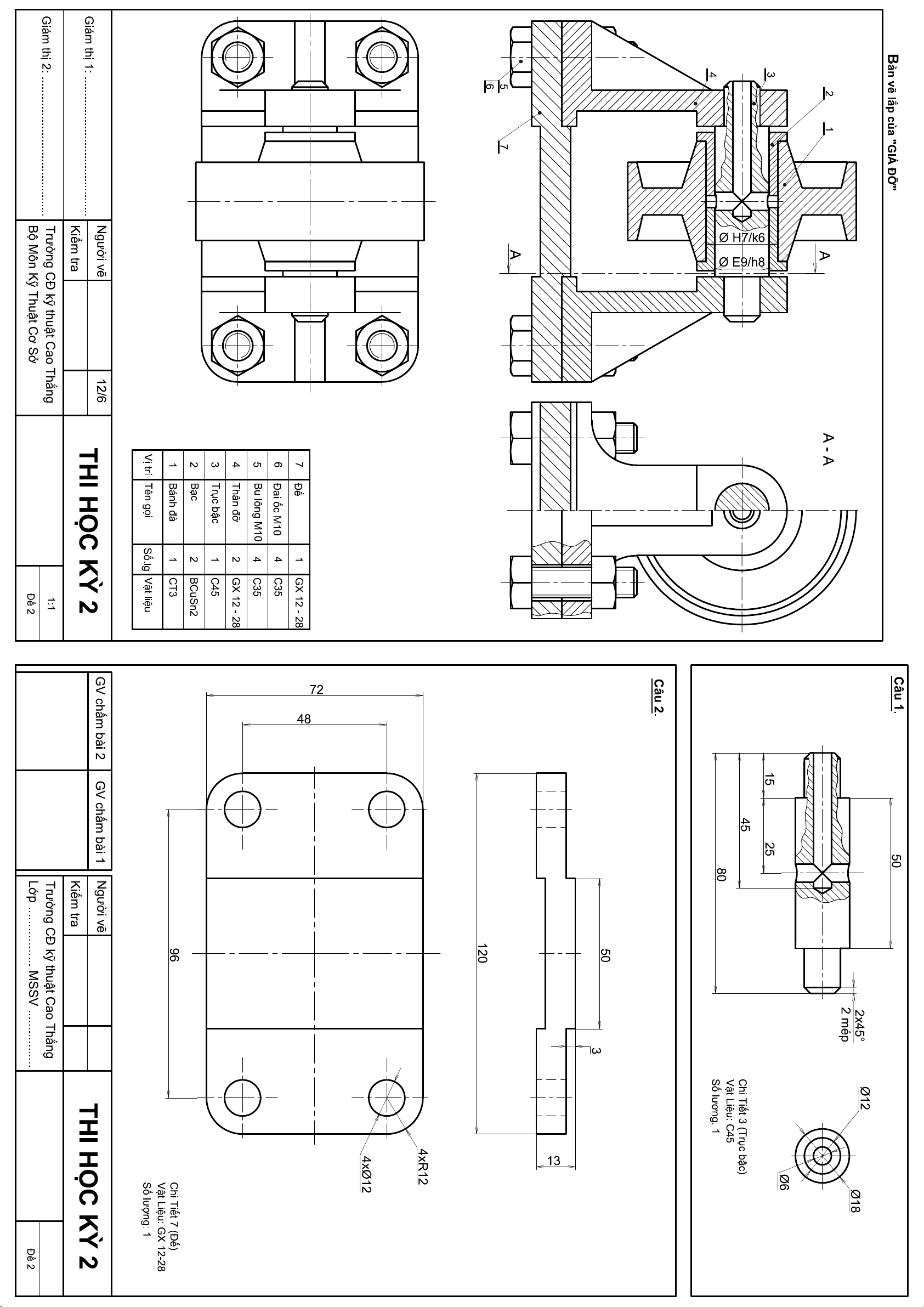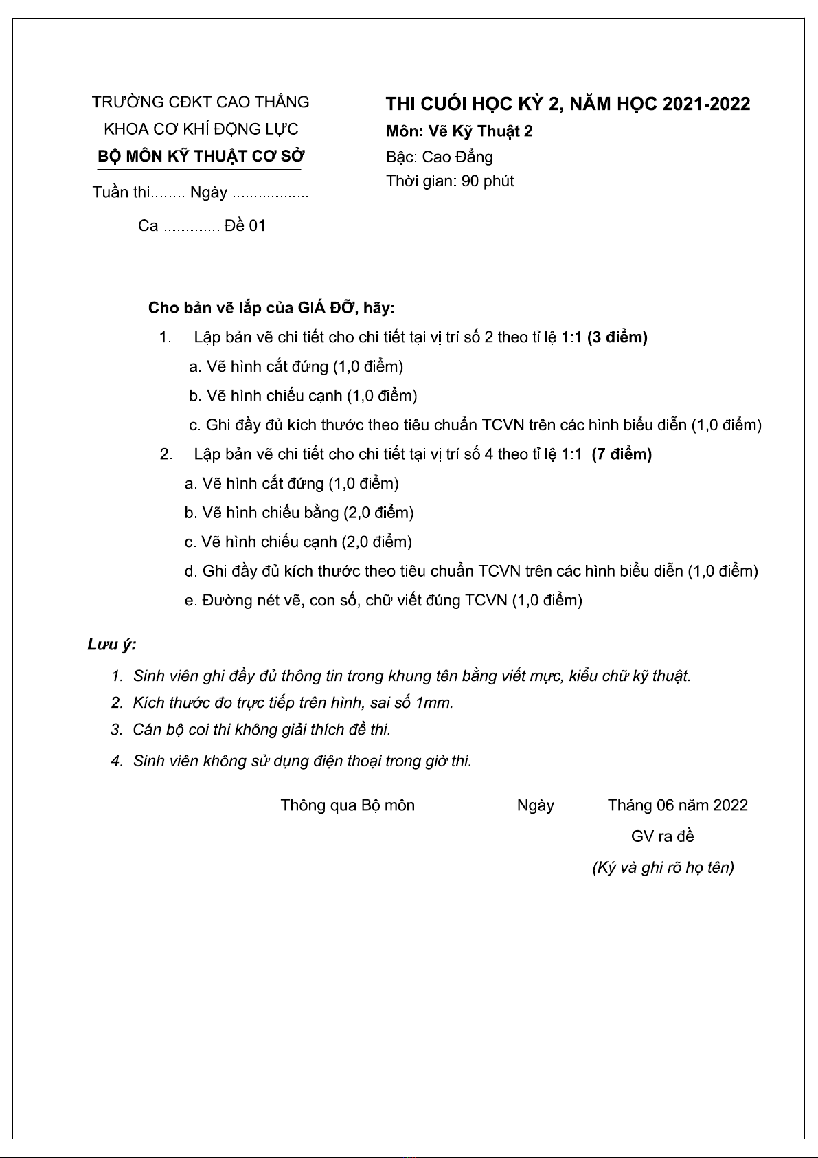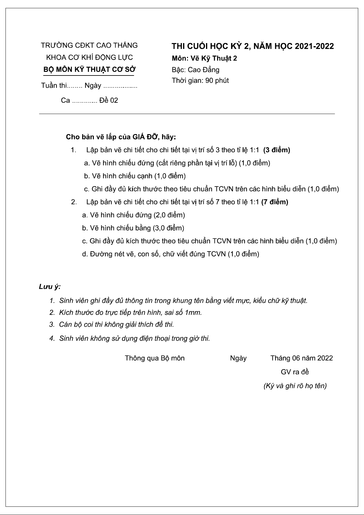 Đề thi kết thúc học phần học kì 2 môn Vẽ kỹ thuật 2 năm 2021-2022 có đáp án - Trường CĐ Kỹ thuật Cao Thắng (Ngành Nhiệt lạnh - Đề 1)