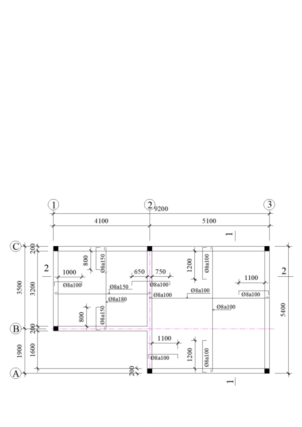 - Vẽ trên giấy A3, chọn tỉ lệ thích hợp, vẽ mặt cắt 1-1, 2-2 của sàn bê tông cốt thép