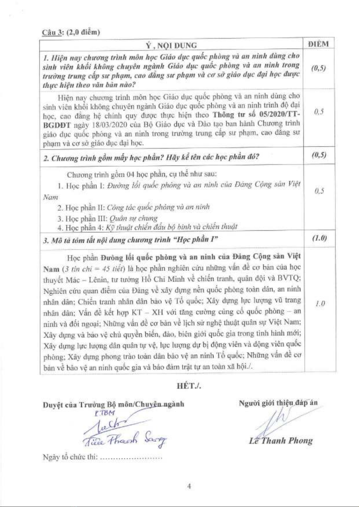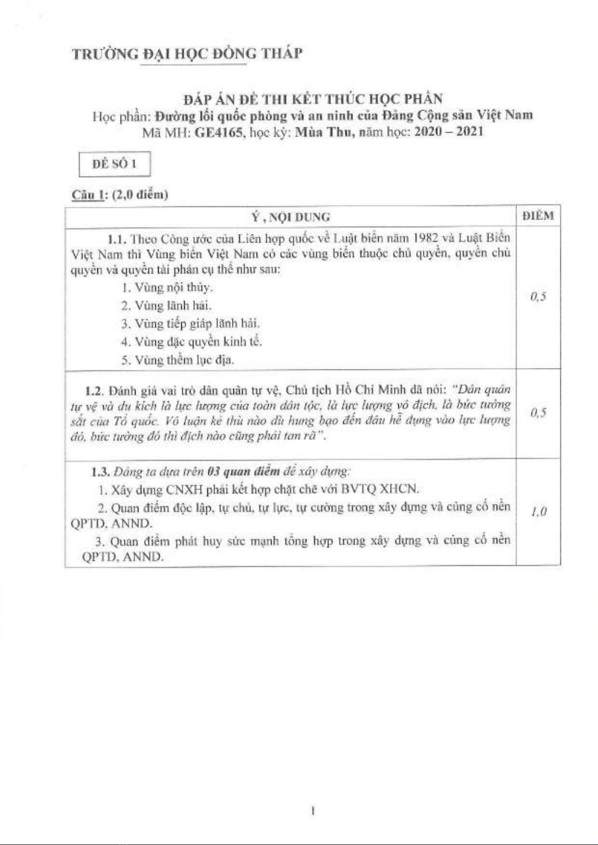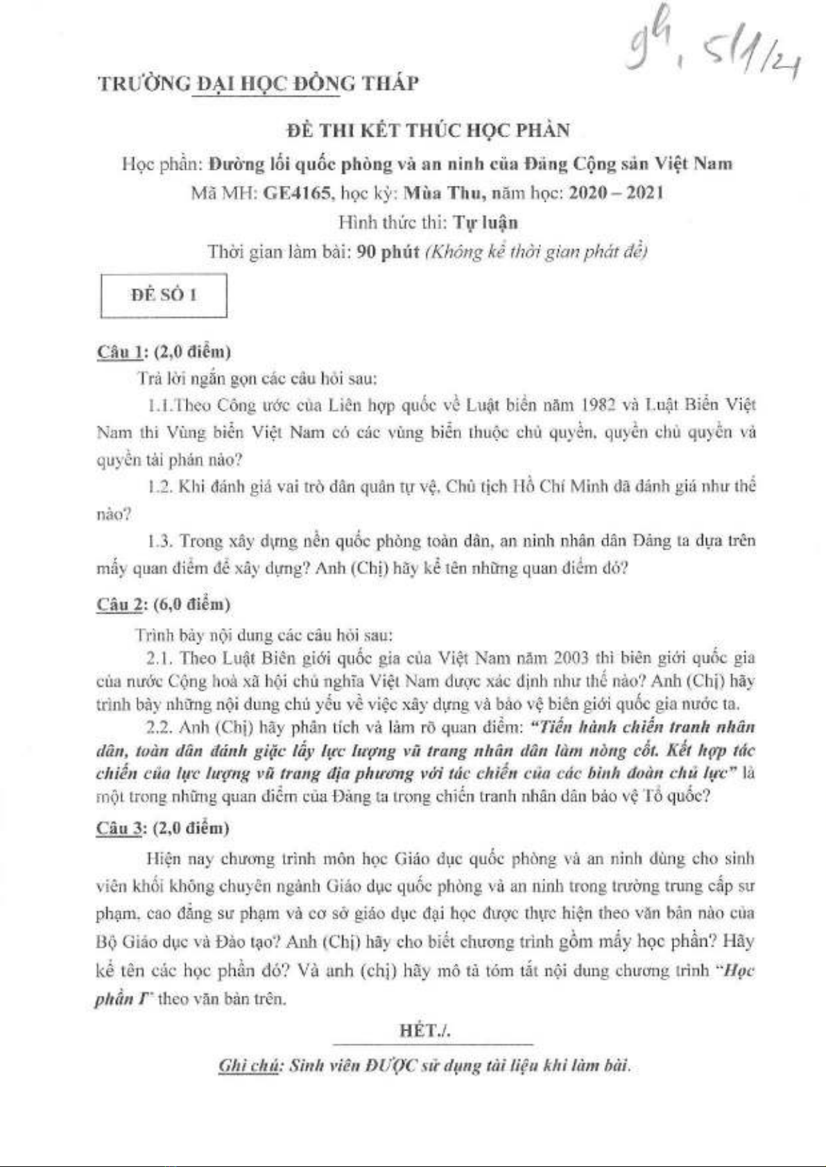 Đề thi kết thúc môn học Đường lối quốc phòng và an ninh của Đảng Cộng sản Việt Nam năm 2020-2021 có đáp án - Trường ĐH Đồng Tháp