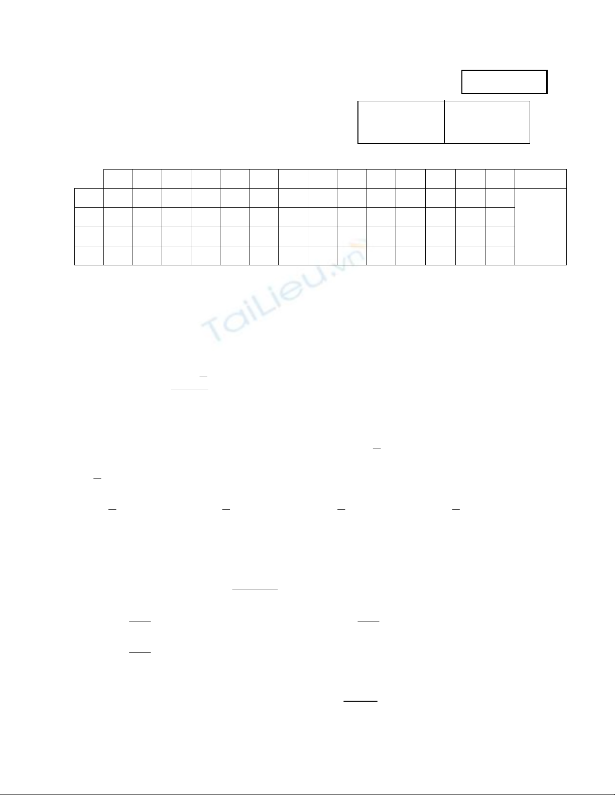 THÍ SINH CHỌN ĐÁP ÁN ĐÚNG RỒI ĐÁNH DẤU CHÉO (X) VÀO BẢNG TRẢ LỜI :