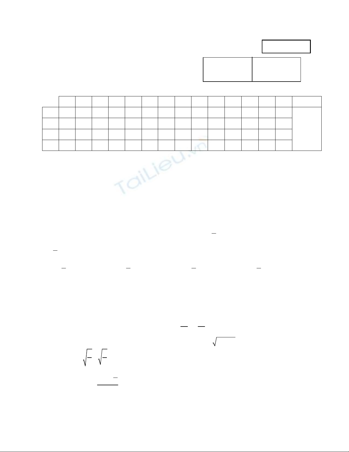 THÍ SINH CHỌN ĐÁP ÁN ĐÚNG RỒI ĐÁNH DẤU CHÉO (X) VÀO BẢNG TRẢ LỜI :