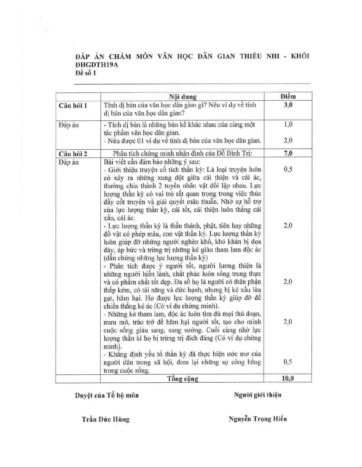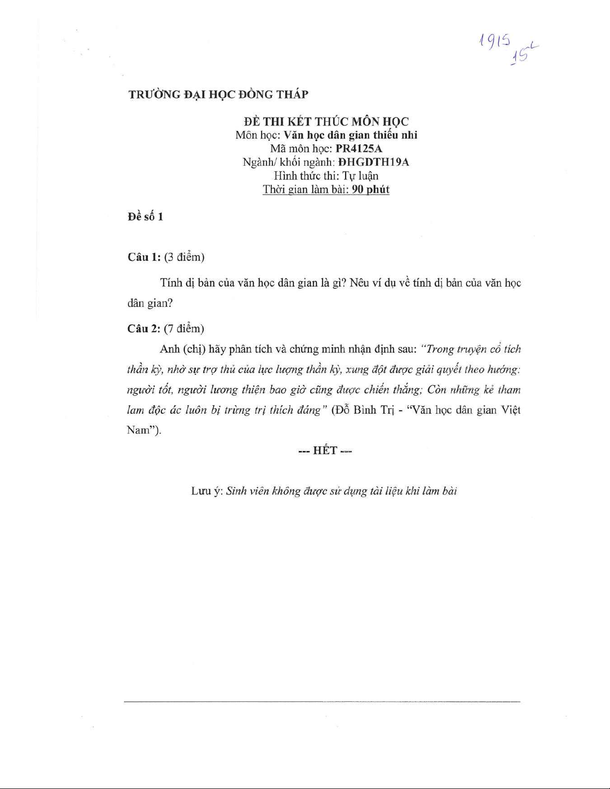 Đề thi kết thúc môn học học kì 2 môn Văn học dân gian thiếu nhi năm 2021-2022 có đáp án - Trường ĐH Đồng Tháp
