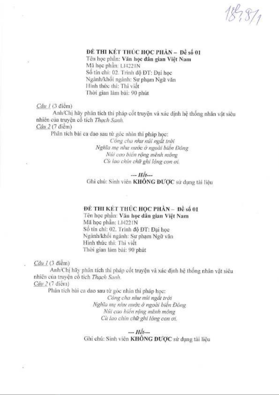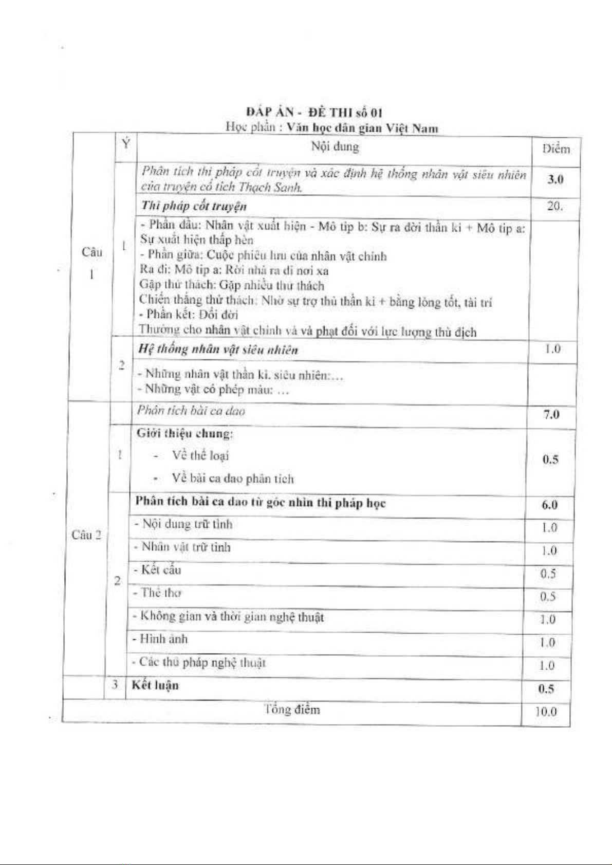Đề thi kết thúc môn học Văn học dân gian Việt Nam năm 2019-2020 có đáp án - Trường ĐH Đồng Tháp