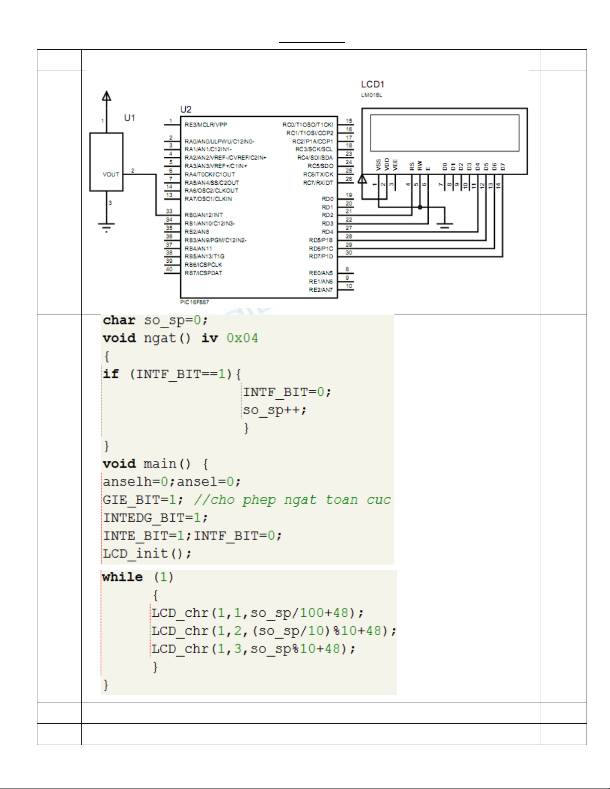 b) Viết chƣơng hiển thị số sản phẩm đếm đƣợc lên LCD16x2. [3,4,5]