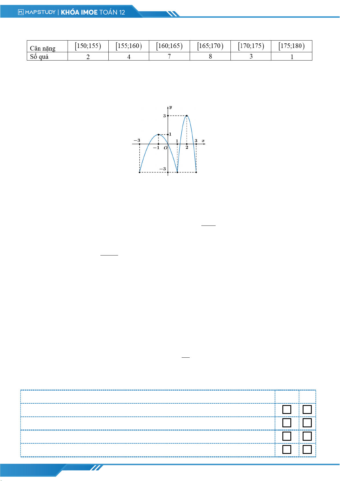 Câu 7: [MAP] Kết quả khảo sát cân nặng của