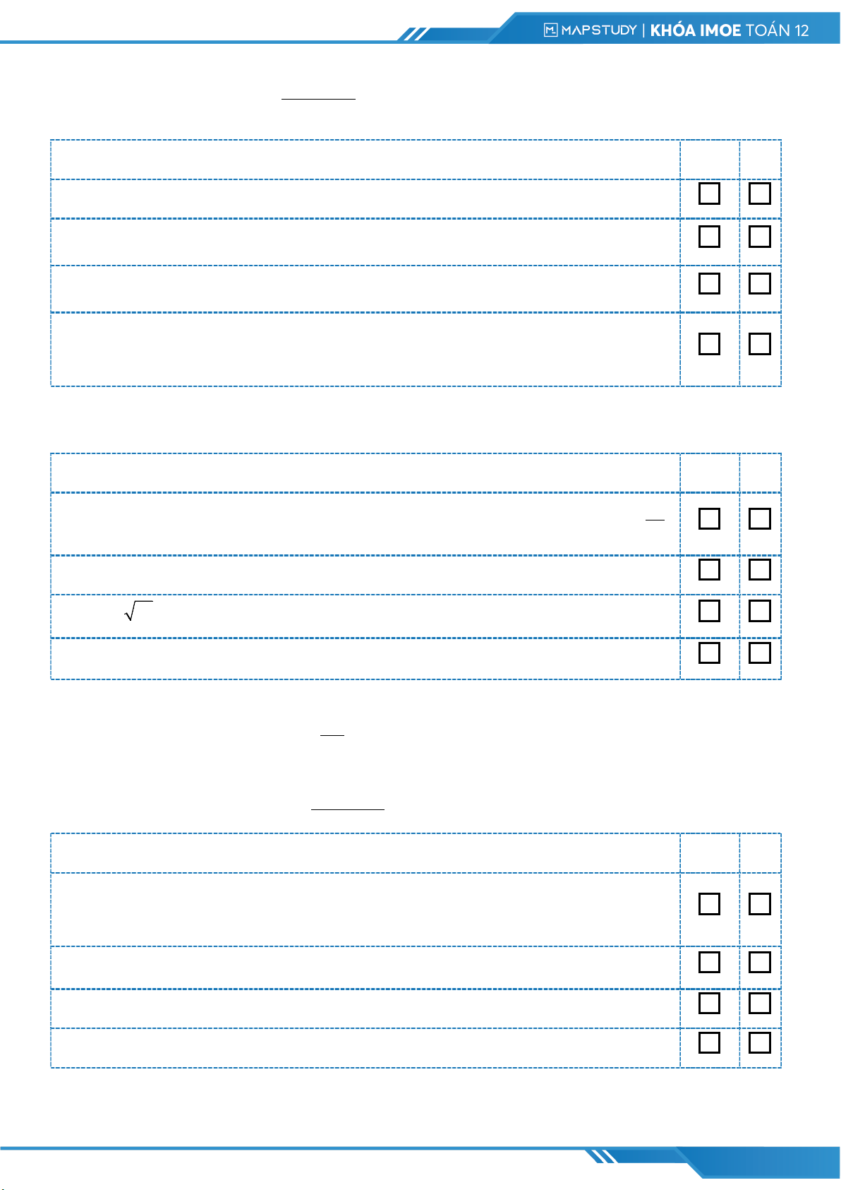 Thí sinh trả lời từ câu 1 đến câu 12. Mỗi câu thí sinh chỉ chọn một phương án.