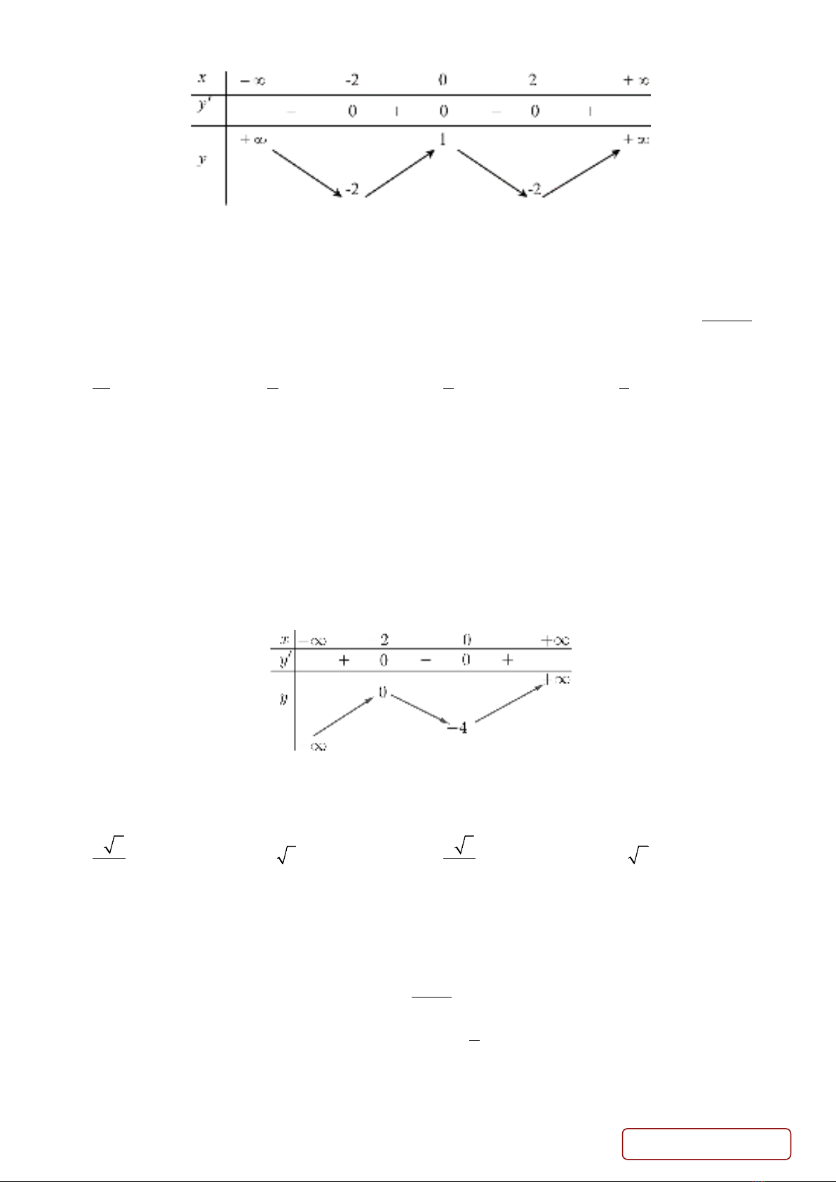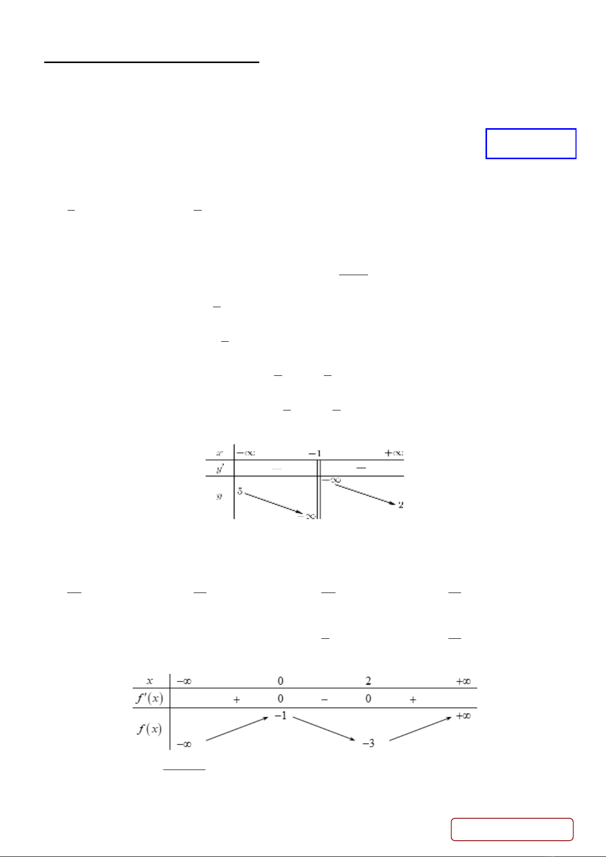 có bảng biến thiên như sau: