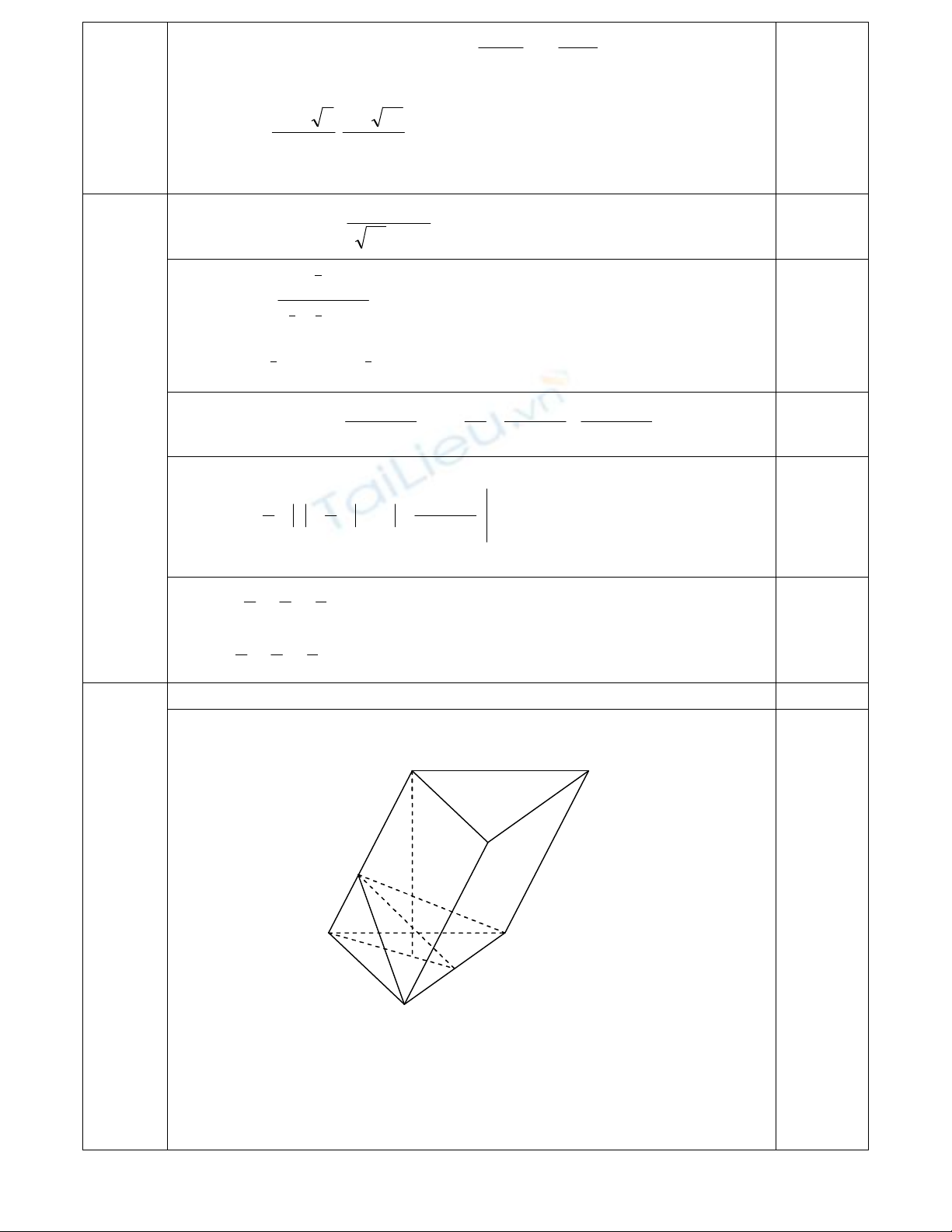 Câu IV (1 điểm) Cho hình lăng trụ ABC.A’B’C’ có đáy là tam giác đều cạnh a, hình chiếu vuông góc của A’ lên măt