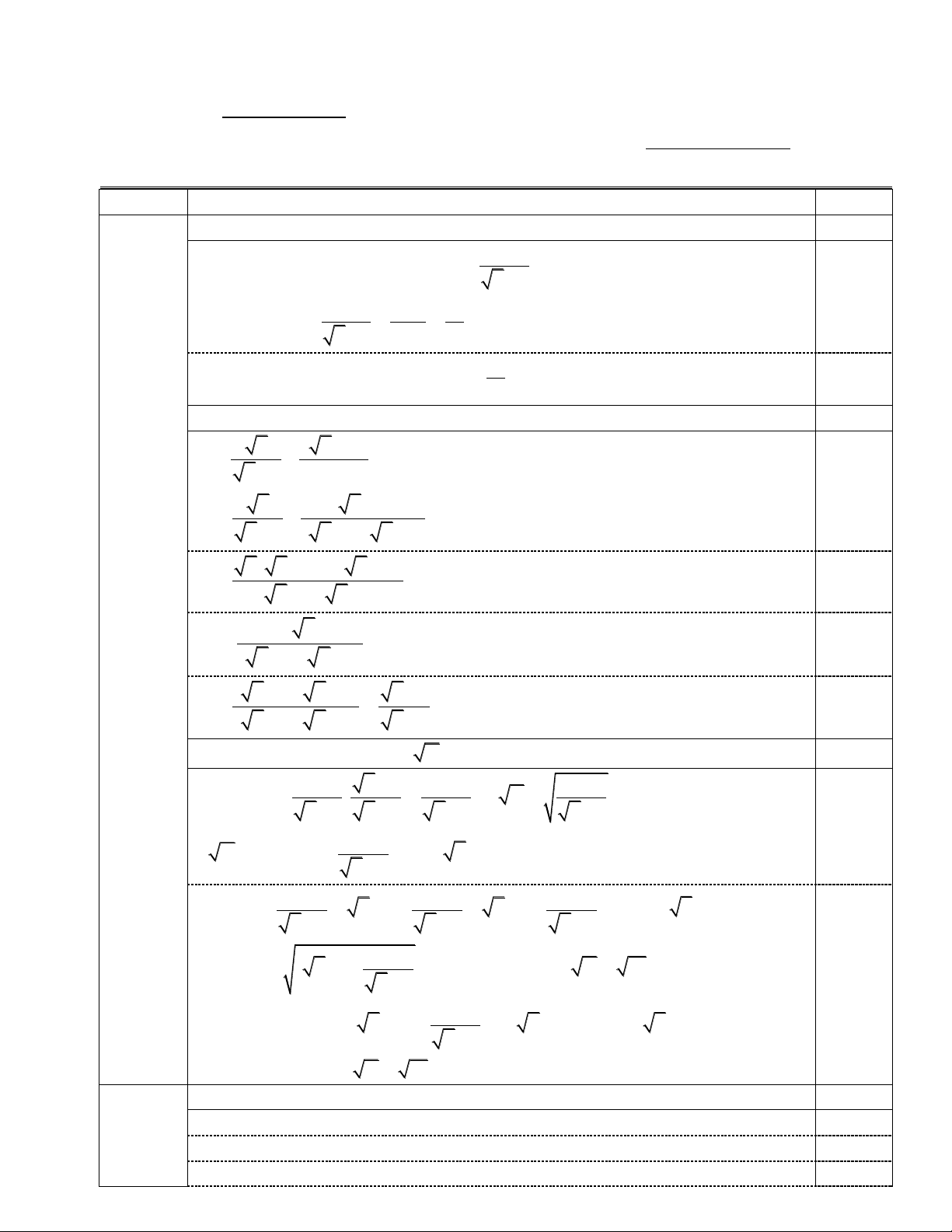 - Bài IV: Thí sinh vẽ sai hình trong phạm vi câu nào thì không có điểm câu đó.