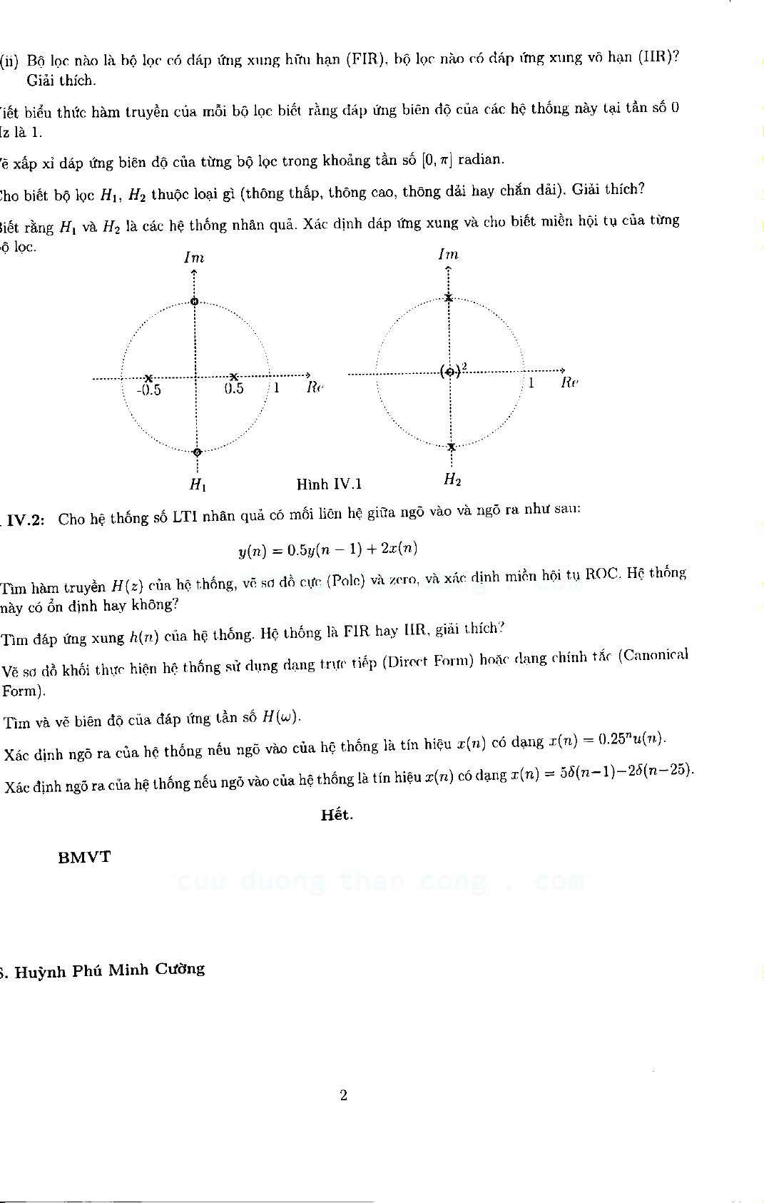 Mời các bạn cùng tham khảo đề thi cuối kỳ môn Xử lý số tín hiệu của Trường Đại học Bách Khoa Tp.HCM. Đề thi gồm có 2 câu hỏi có kèm đáp án để người đọc làm quen với cấu trúc và cách làm bài. Cùng tìm hiểu và tham khảo nội dung thông tin tài liệu.