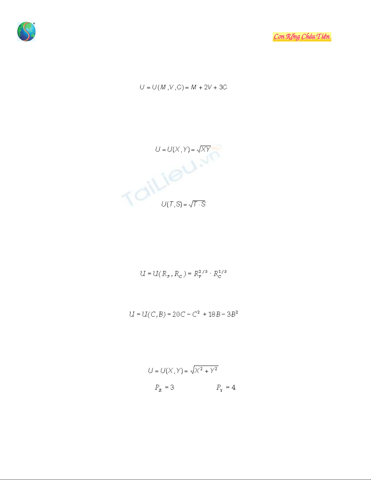 . Cá nhân A th a mãn nhu c u nào đó c a b n thân qua vi c s d ng 3 hàng hóa ỏ ầ ủ ả ệ ử ụ M, V, và C. Hàm s h u d ng c a cá nhânố ữ ụ ủ