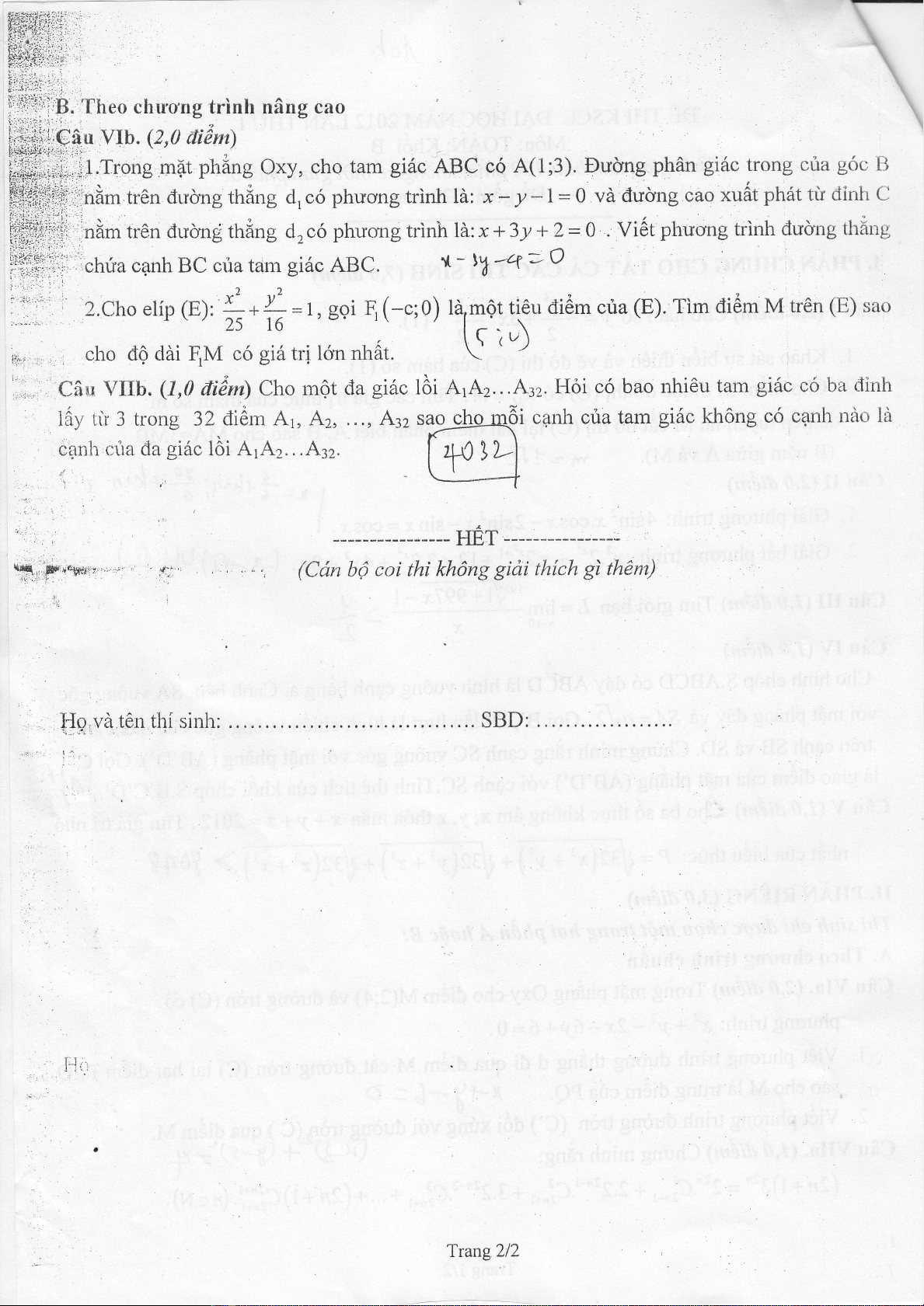 . Cf,u VIIb. (1,0 itidm) Cho mQt da gi6c