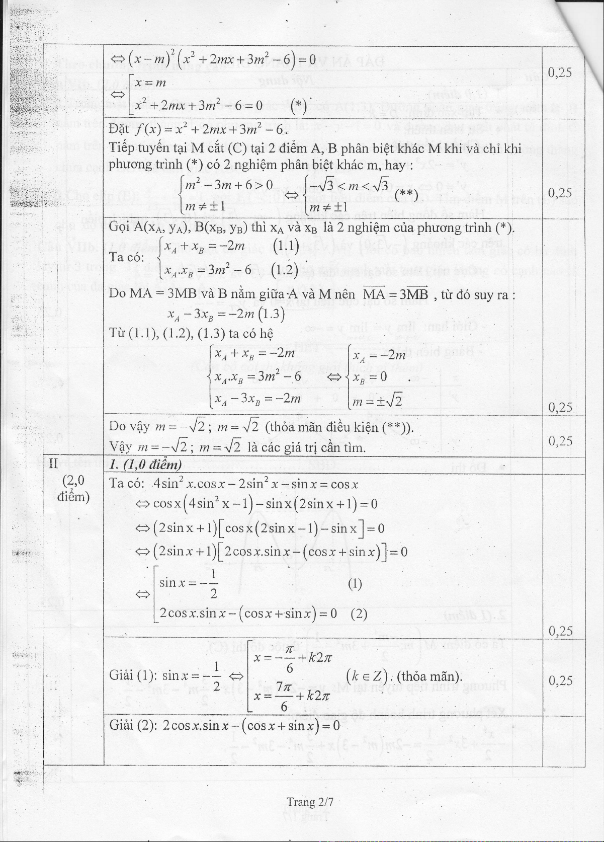 ",,,'2" Cho di6m Mthu6c dO thi (C) co xM =m.Tlm c6c giltrf thUc ciratham s6 *