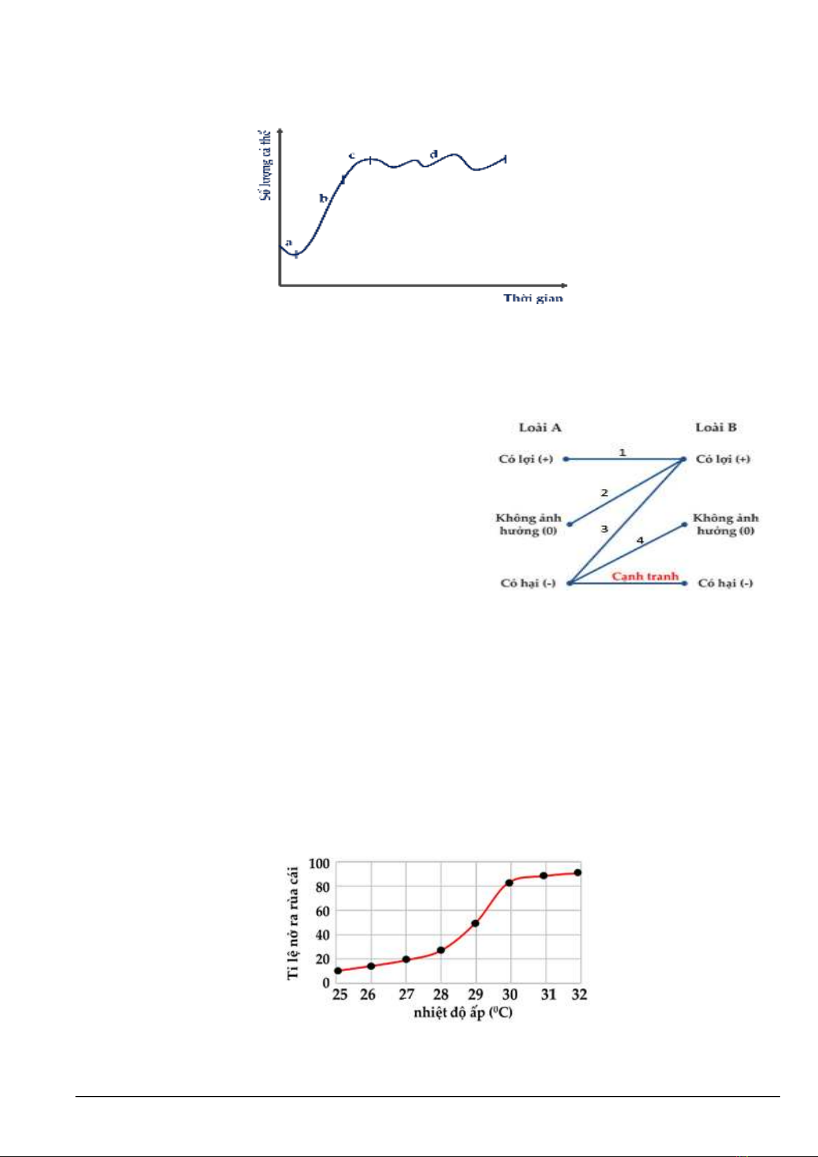 Câu 115. đồ bên đây tả s p trng ca rùa bin t l con cái được sinh ra theo nhiệt độ (oC).