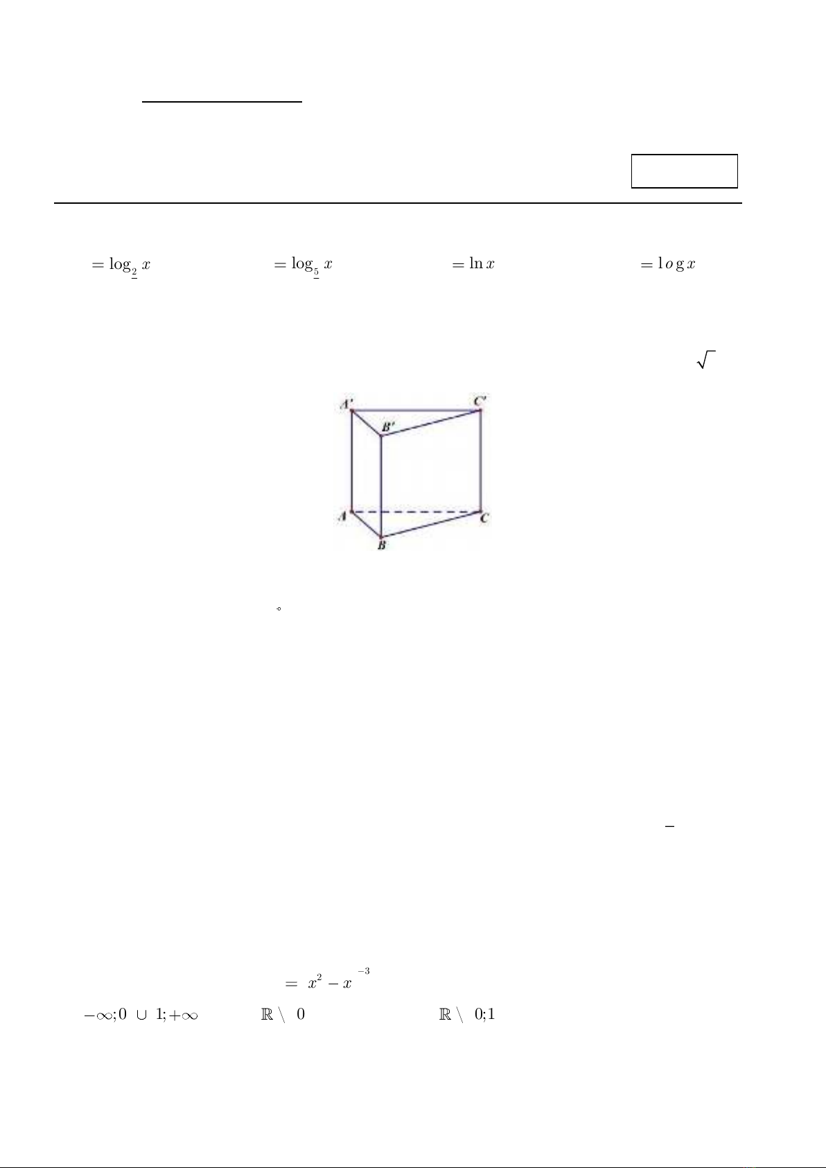 Câu 31. Cho khối lăng trụ có diện tích đáy là