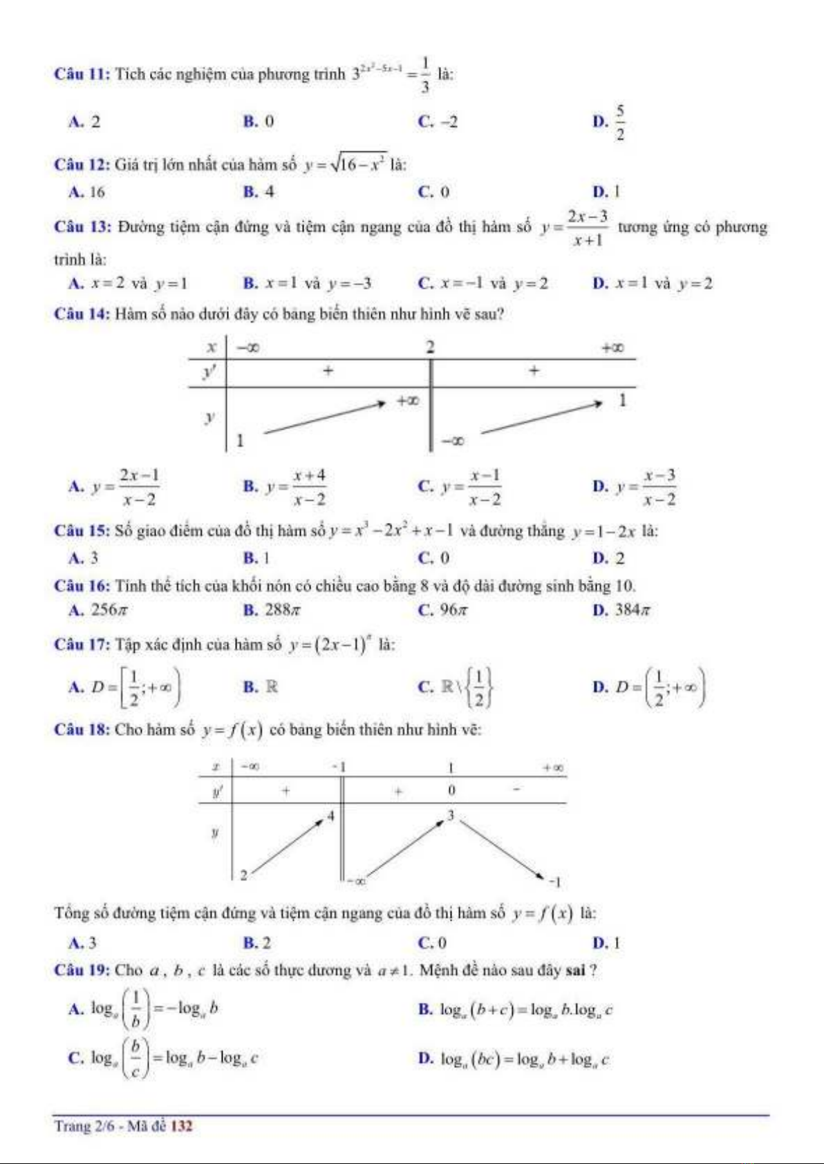 Đề thi có 14 câu hỏi chia sẻ cho nhiều vấn đề khác nhau trong lúc học toán, chỉ số 1-6 là câu hỏi đáp án nhiều lựa chọn yêu cầu học sinh sử dụng công thức toán để giải quyết vấn đề. Các câu hỏi 7-12 là câu hỏi mở rộng yêu cầu học sinh chứng minh hoặc thuyết luận đáp án với công thức toán. Các câu hỏi cuối cùng là câu hỏi số 13 và 14 yêu cầu học sinh phân tích biểu đồ của hàm và định tính chính quy. Tổng thể, trong quá trình xét nghiệm, học sinh được yêu cầu phản ánh kỹ năng kiến thức toán, bao gồm công thức toán, chuyển đổi hình học, tính toán trigoniômetric và tiện ích calculus. Đề thi cũng kiểm tra kỹ năng sử dụng công thức toán cho một số vấn đề thực tế, và viết trình bày đáp án được hiểu rõ. Tổng quát, đề thi này được thiết kế để kiểm tra kỹ năng thực hành và khả năng giải quyết vấn đề của học sinh, và cũng được dùng để rèn luyện và chuẩn bị cho kì thi cuối cùng.