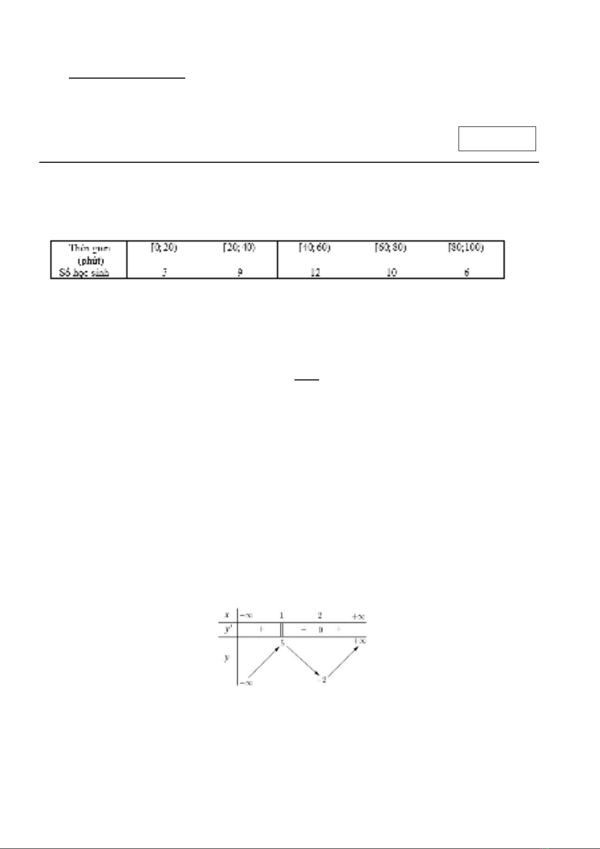 Câu 1. Khảo sát thời gian tập thể dục của một số học sinh khối 12 thu được mẫu số liệu ghép nhóm sau: