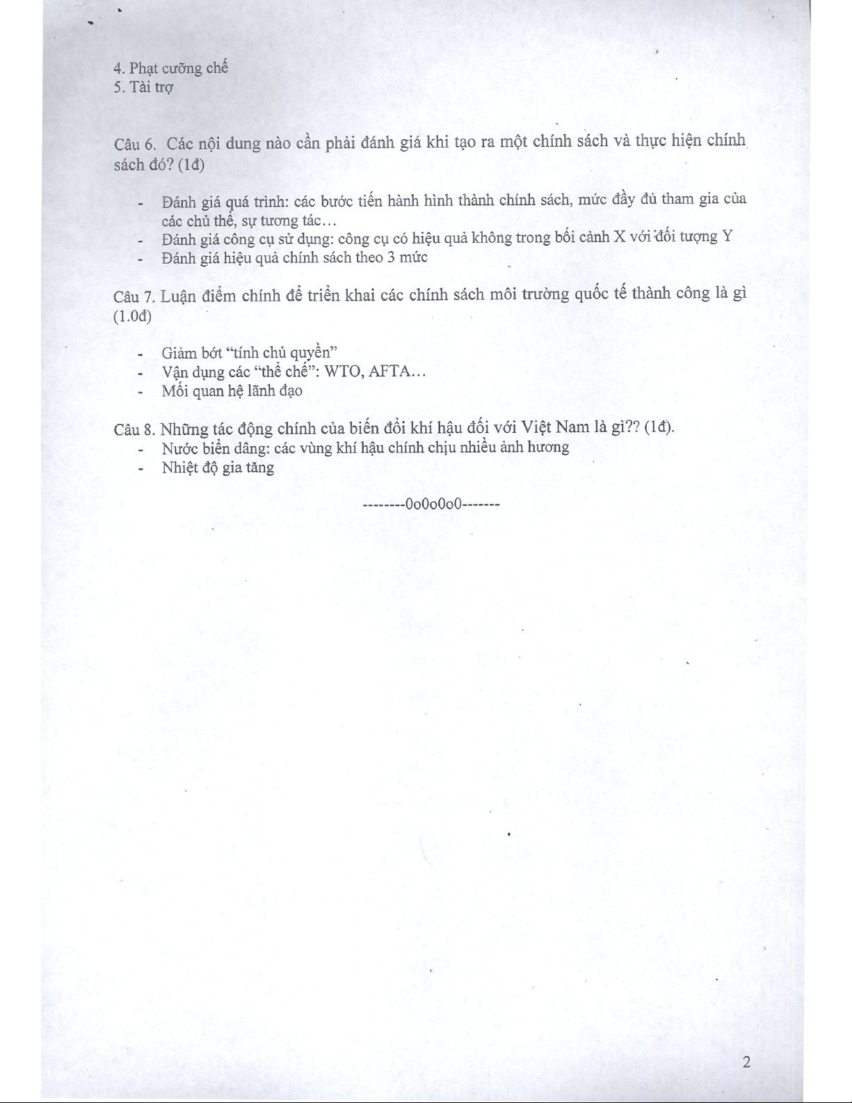 Đề thi Chính sách môi trường