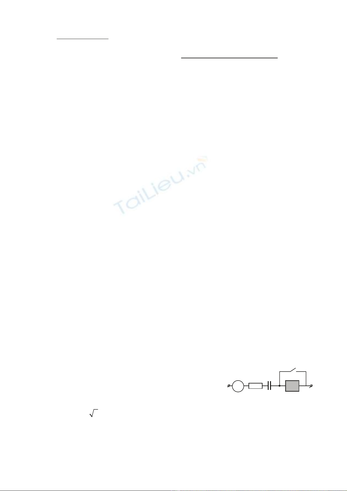 1) a) Với f = 50 Hz thì khi khóa K đóng, ampe kế chỉ 1A. Tính điện dung Co của tụ điện.
