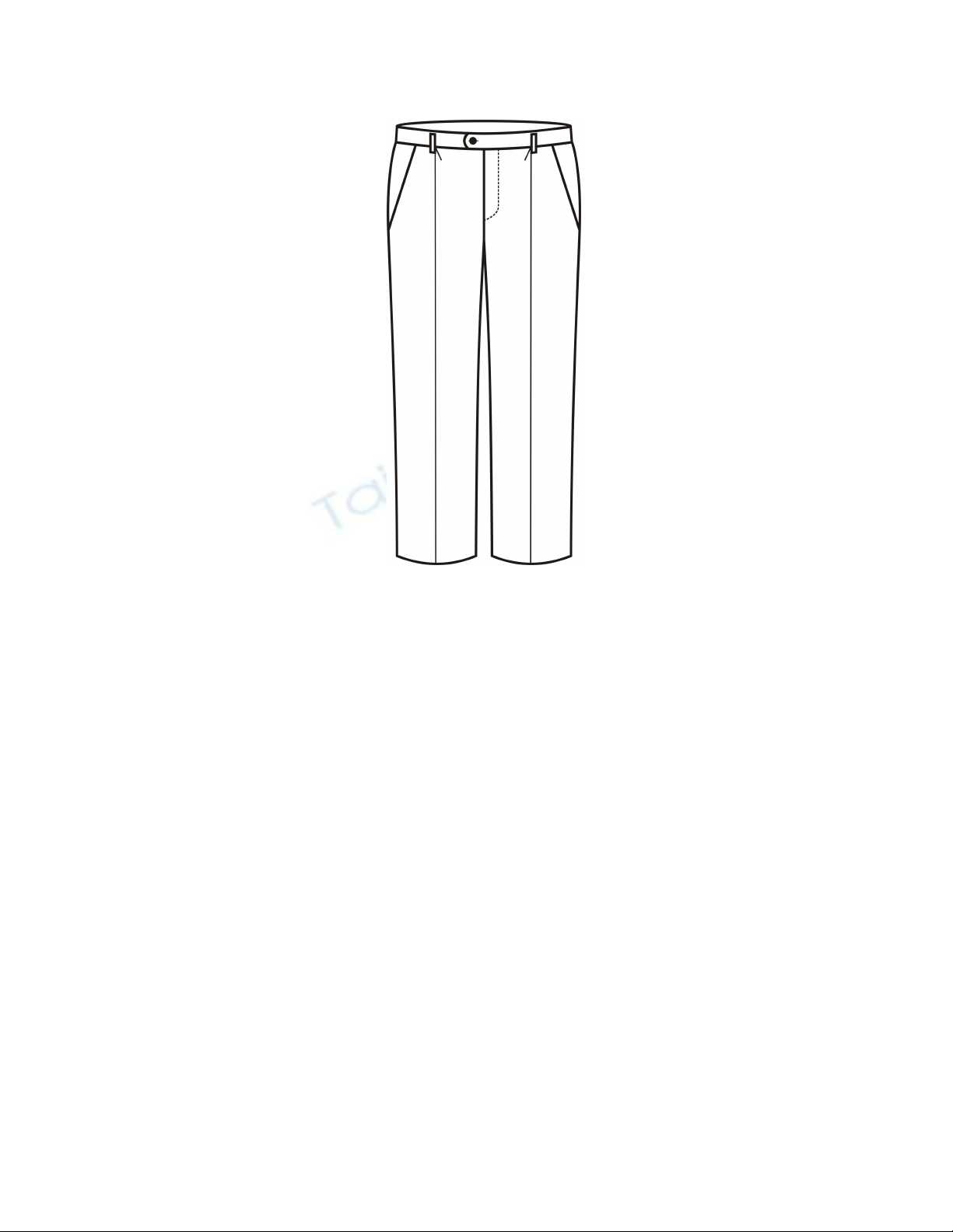 b. Thân trước quần âu nam 2 ly xuôi (như hình vẽ mô tả dưới đây) theo số