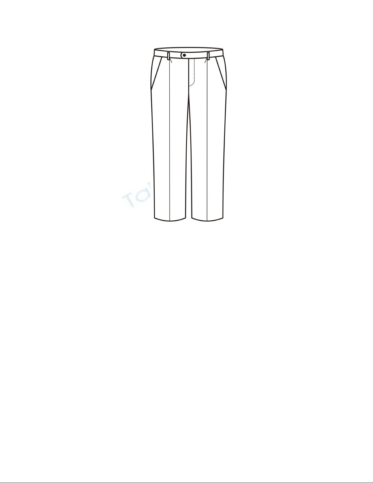 b. Thân trước quần âu nam 2 ly xuôi (như hình vẽ mô tả dưới đây) theo