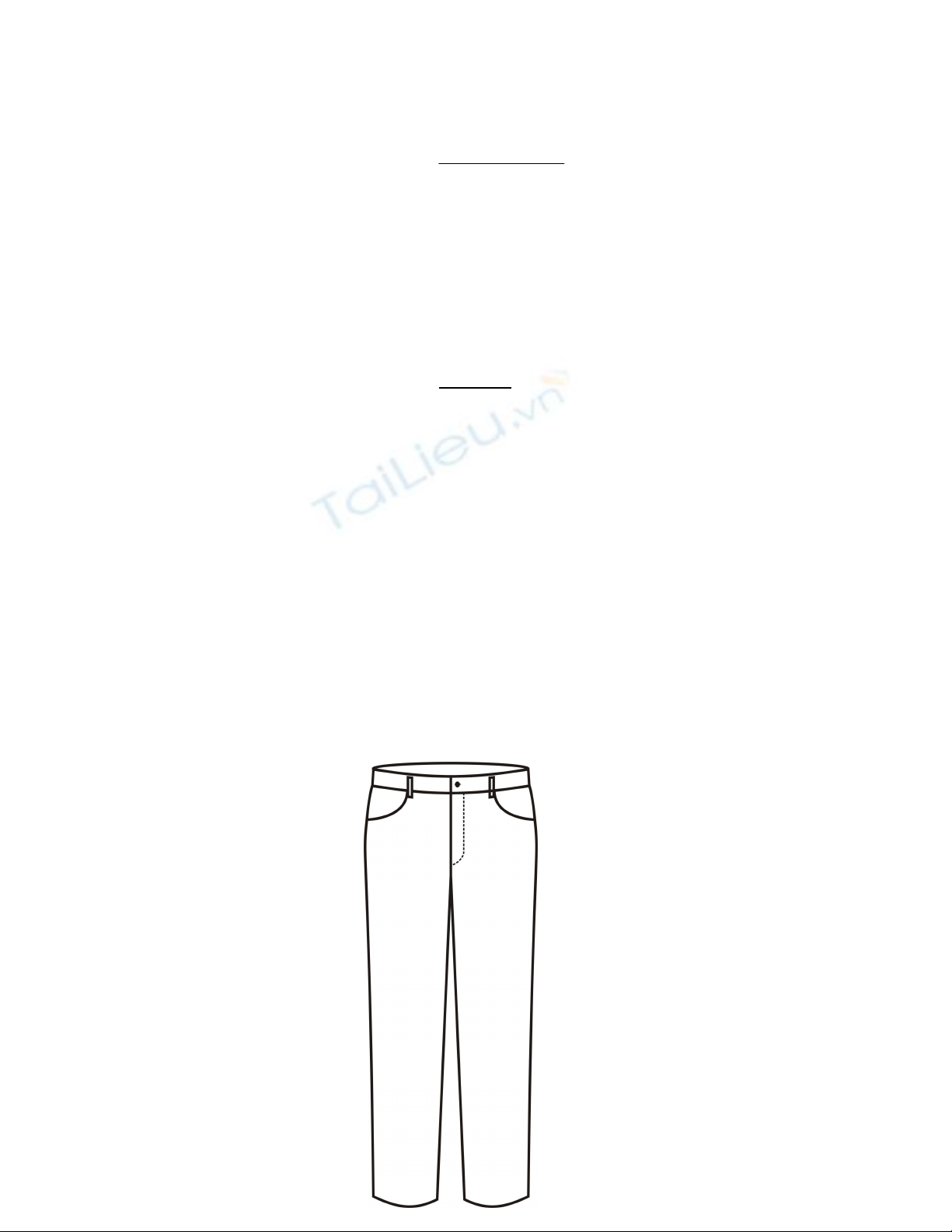 a. Thân trước quần âu nữ xăng ly ống côn (như hình vẽ mô tả dưới đây)