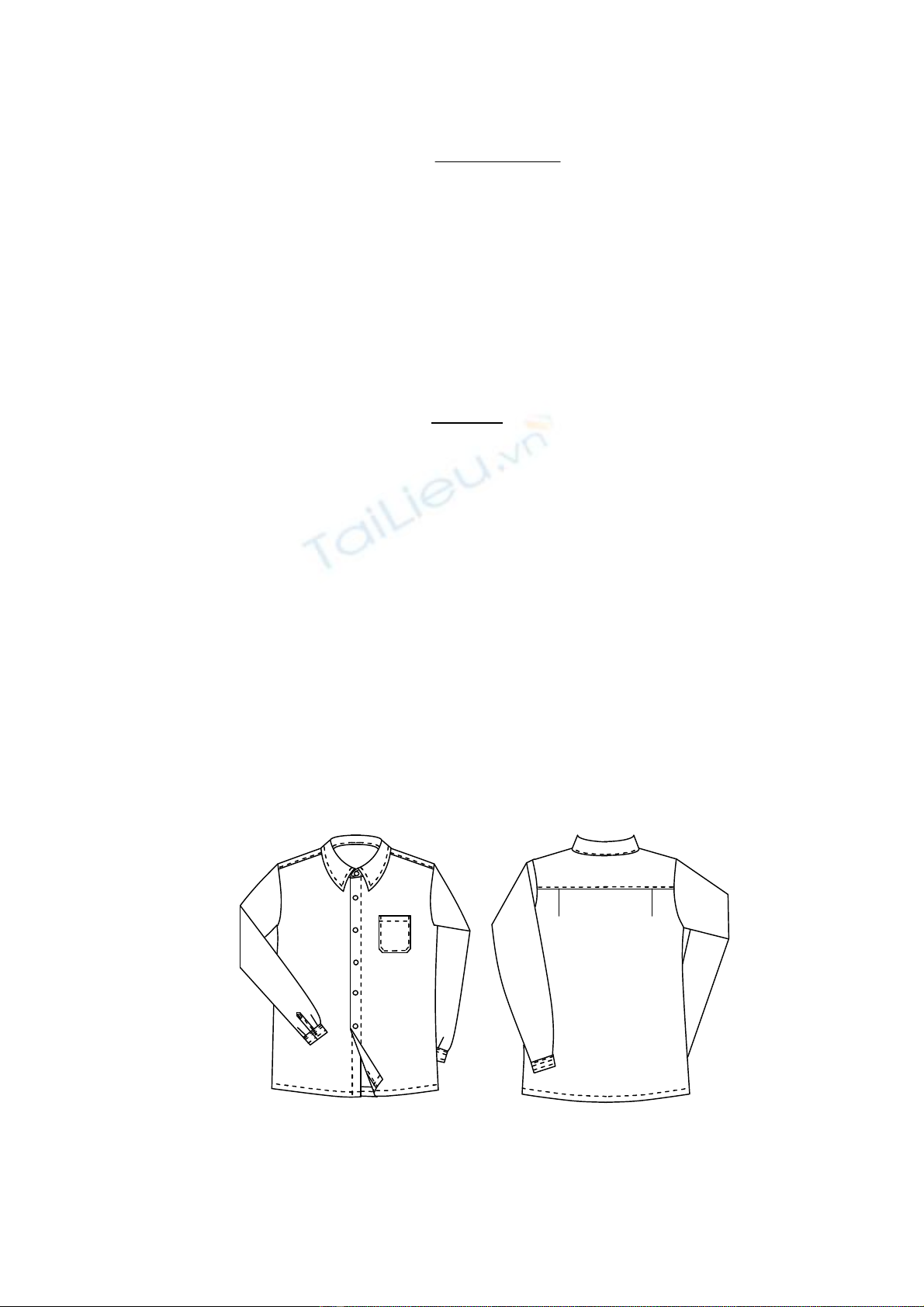 Cho áo sơ mi nam có đặc điểm cấu trúc như hình vẽ. Hãy mô tả đặc