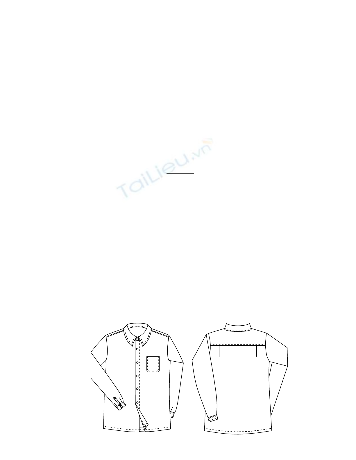 Cho áo sơ mi nam có đặc điểm cấu trúc như hình vẽ. Hãy mô tả đặc