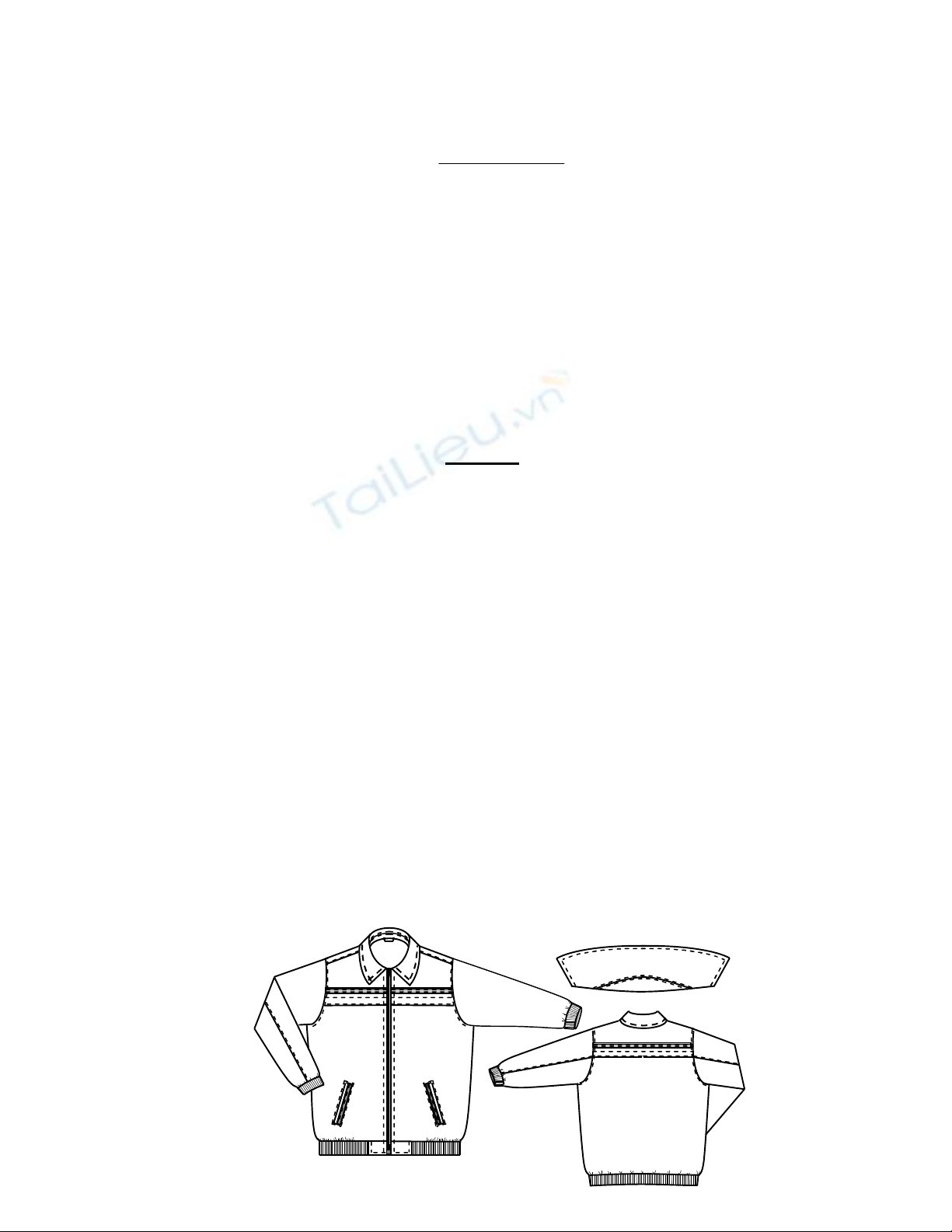 tỷ lệ 1: 5 chi tiết thân trước lần chính áo Jacket hai lớp với số đo sau: