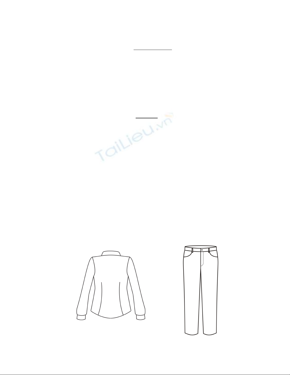a. Thân trước quần âu nữ xăng ly ống côn (như hình vẽ mô tả dưới đây)
