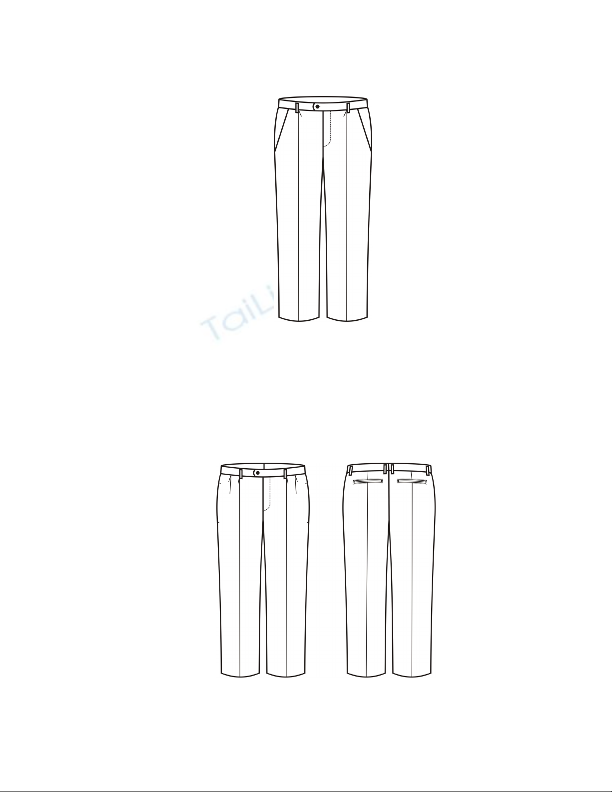 b. Thân trước quần âu nam 2 ly xuôi (như hình vẽ mô tả dưới đây) theo