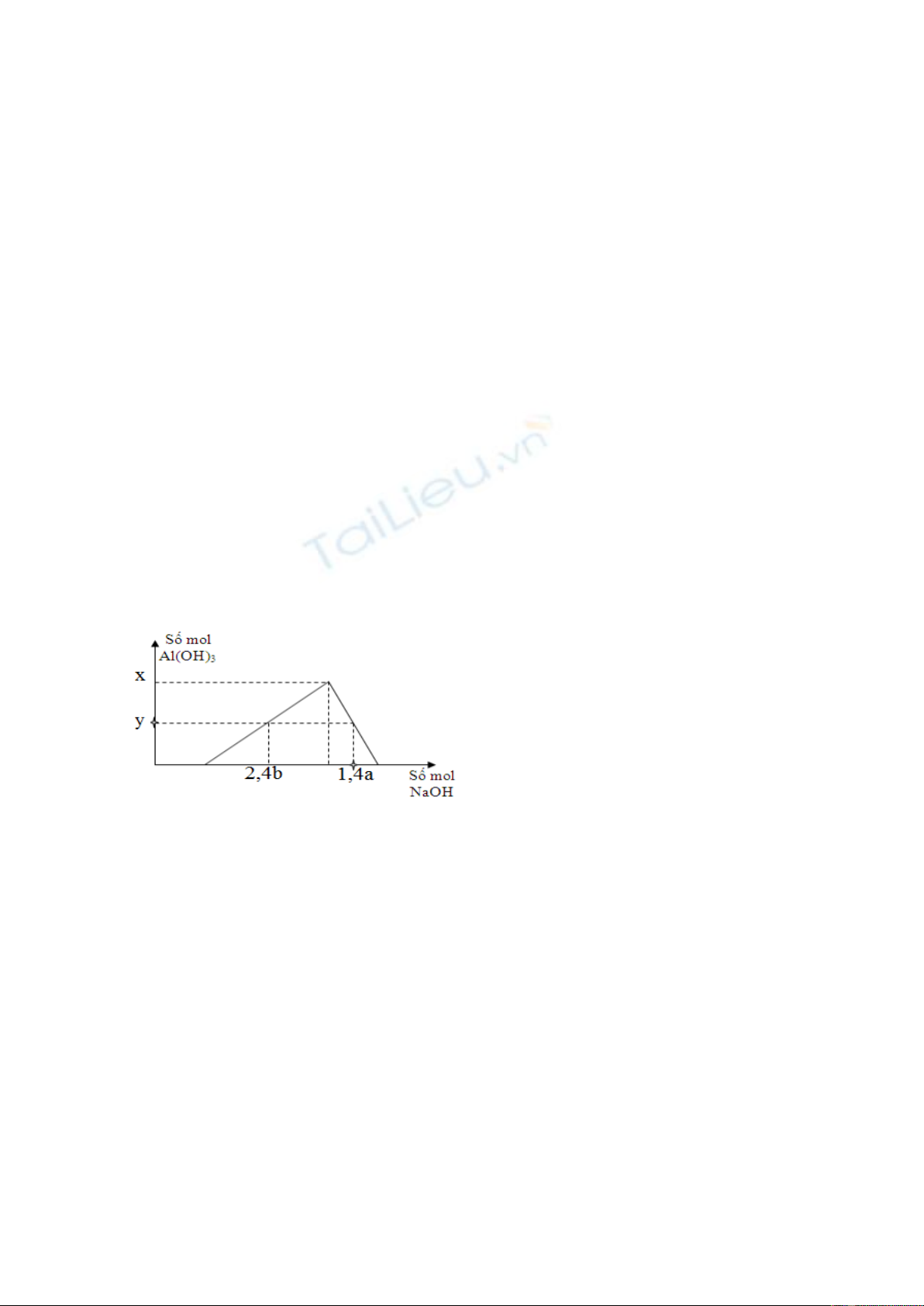 Đồ thị dưới đây mô tả sự phụ thuốc của số mol kết tùa Al(OH)3 vào số mol NaOH đã dùng. Tỉ số a/b gần với giá trị