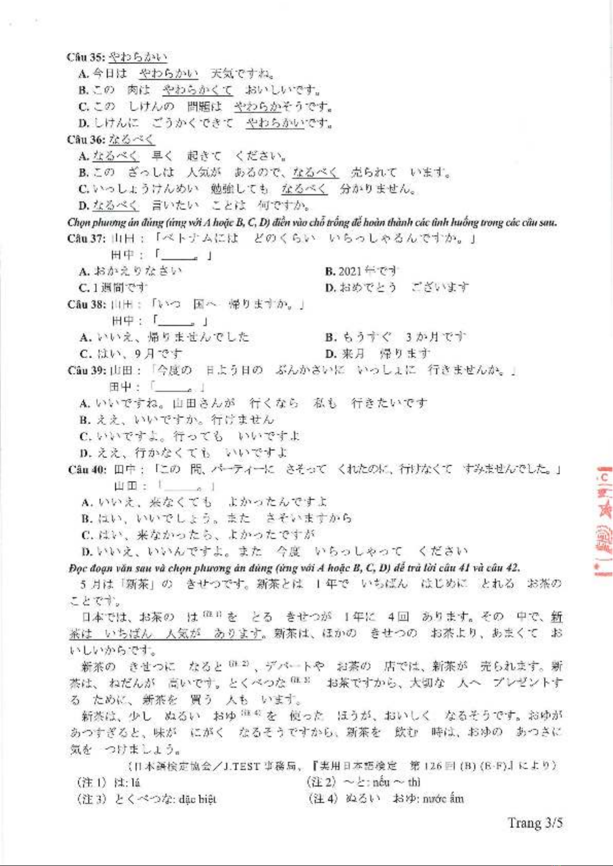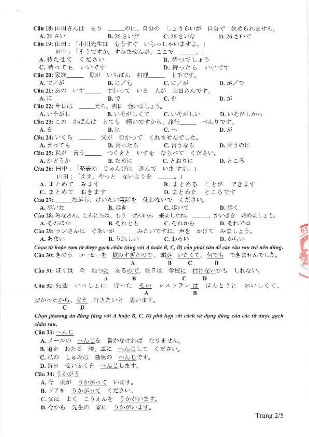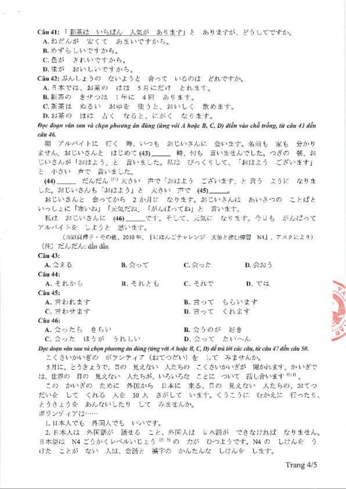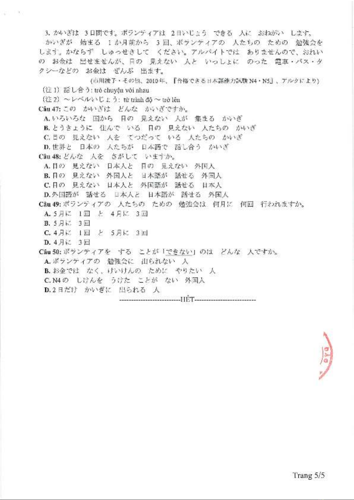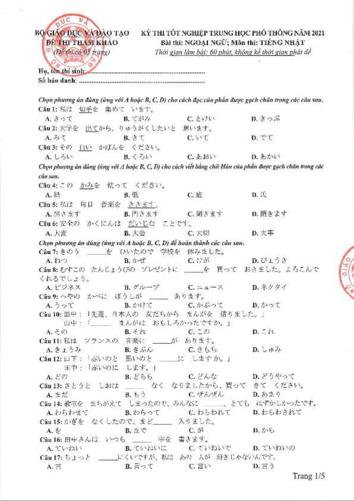 Đề thi minh họa THPT Quốc gia năm 2021 môn Tiếng Nhật - Bộ Giáo dục và Đào tạo