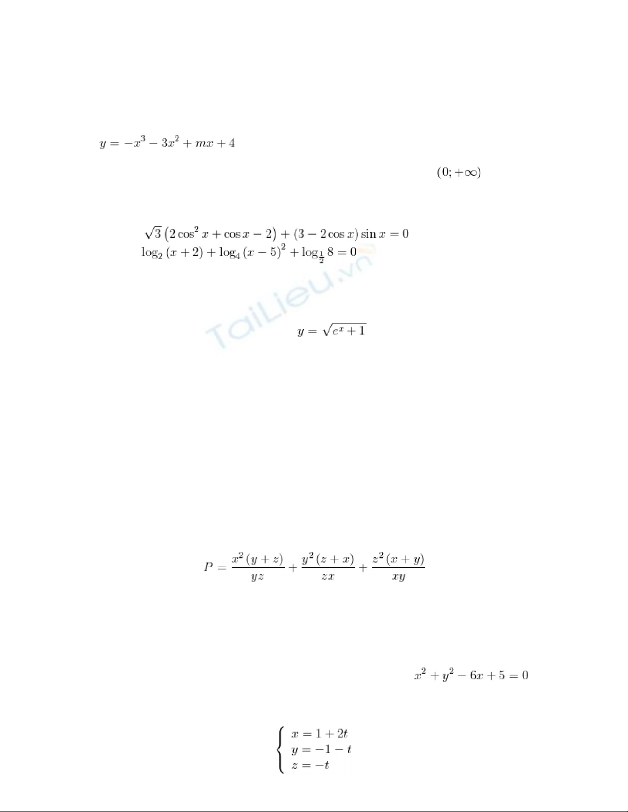 2. Trong không gian với hệ tọa độ Oxyz, cho điểm M(2;1;0) và đường thẳng (d) có phương trình tham số: