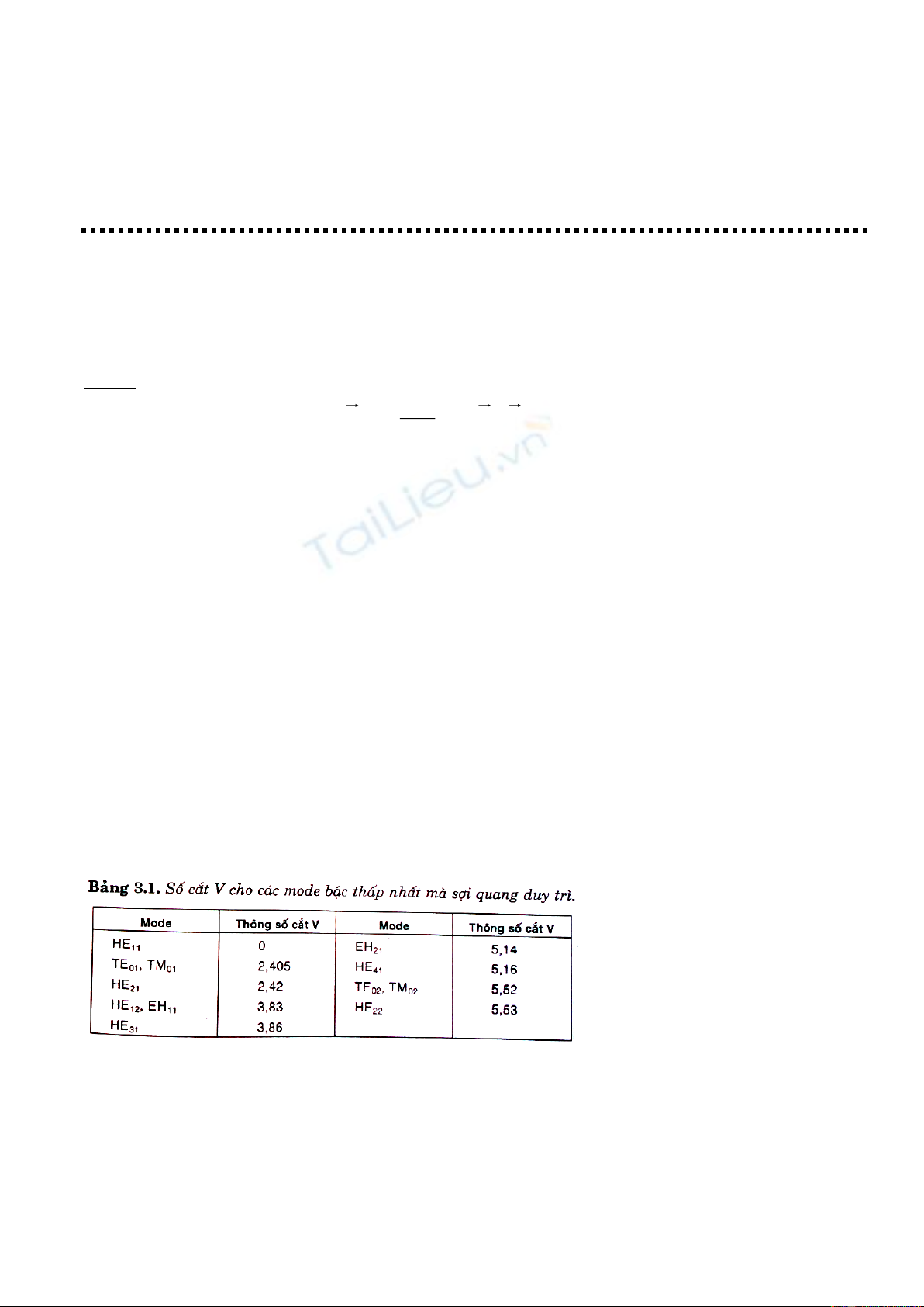 Ñöôøng kính dmin cuûa sôïi quang truyeàn 3 mode V=2.405 (0.25 ñieåm)