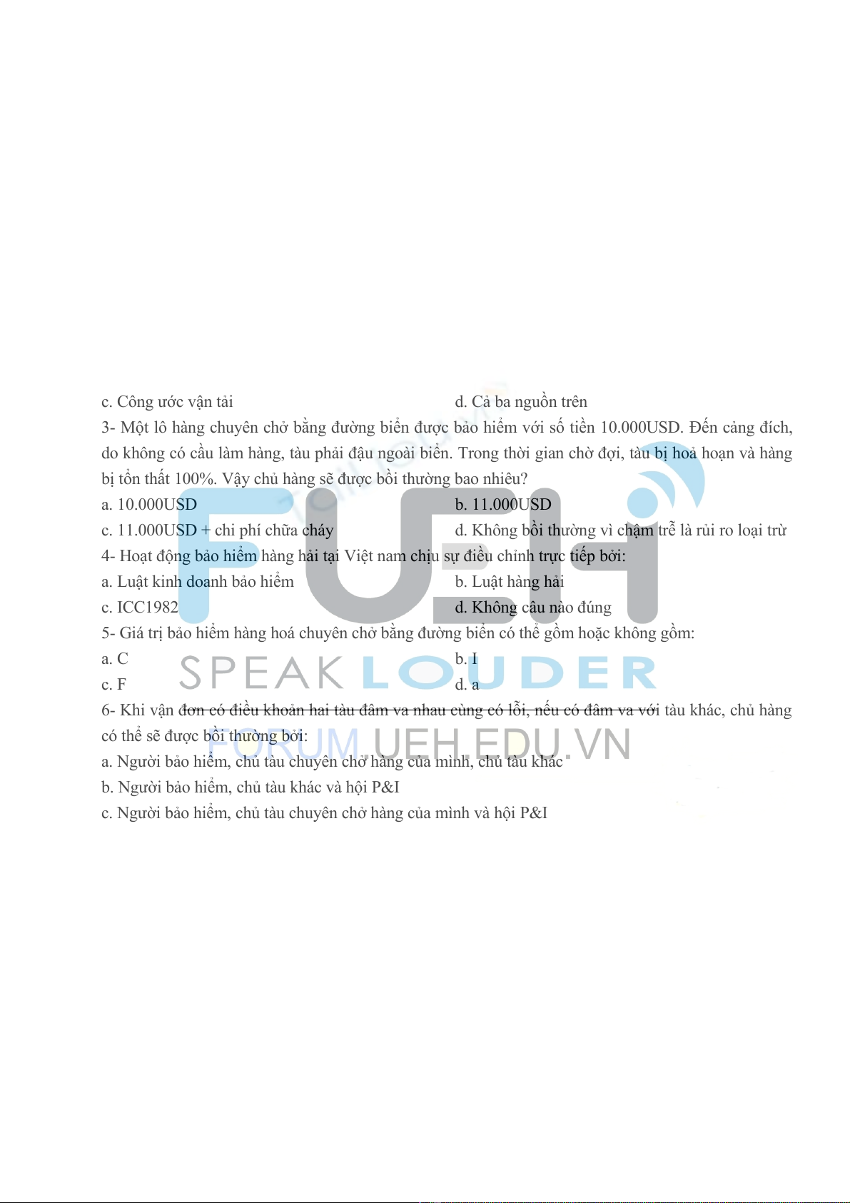 3- Một lô hàng chuyên chở bằng đường biển được bảo hiểm với số tiền 10.000USD. Đến cảng đích,