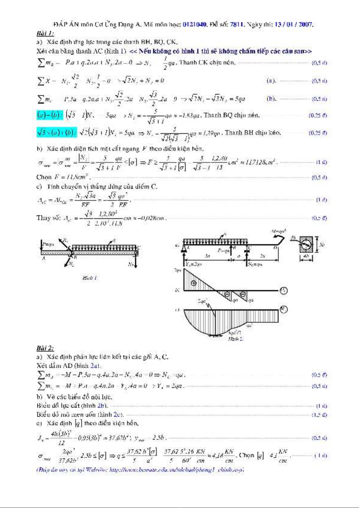 ĐỀ THI MÔN CƠ ỨNG DỤNG A BỘ MÔN CƠ HỌC - ĐH SƯ PHẠM KỸ THUẬT TP.HCM