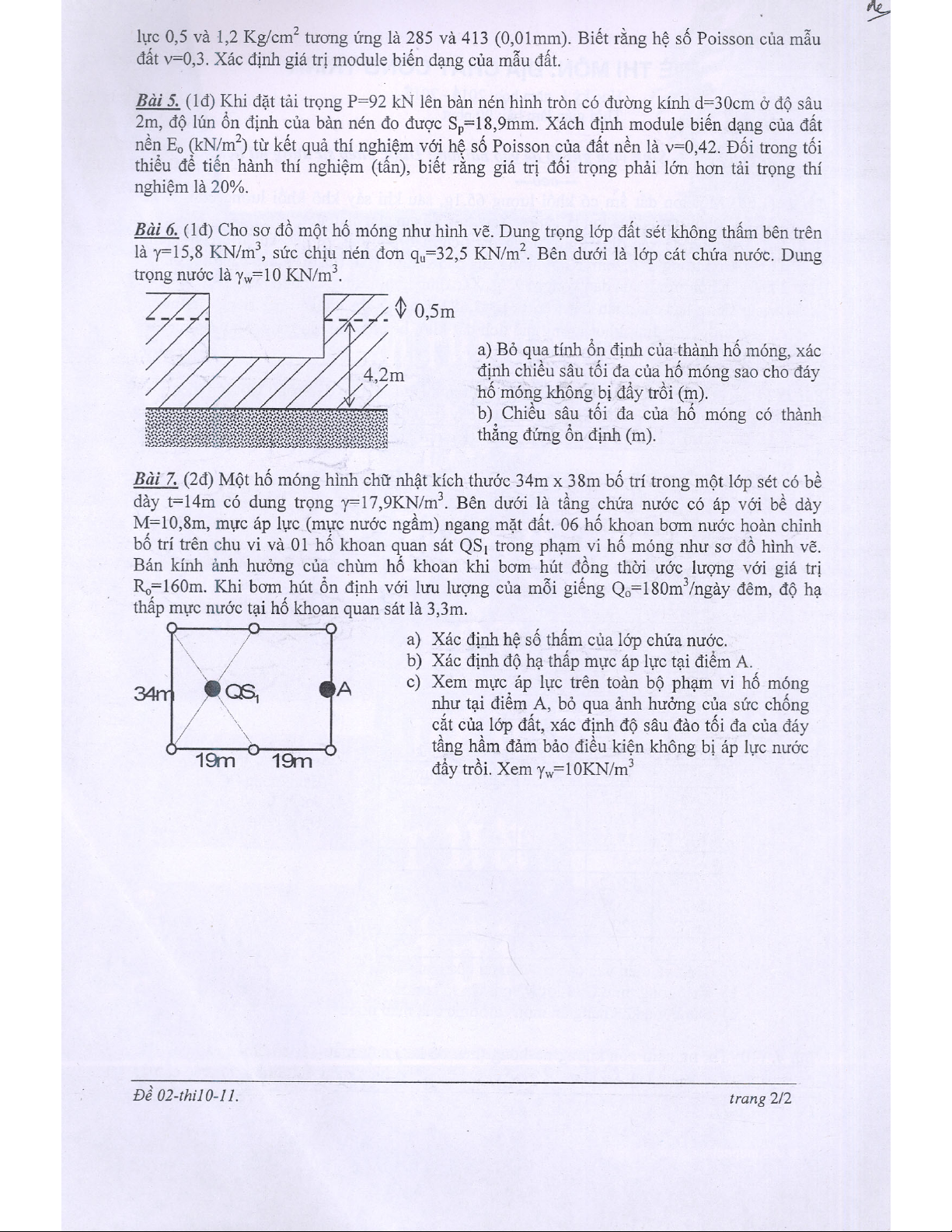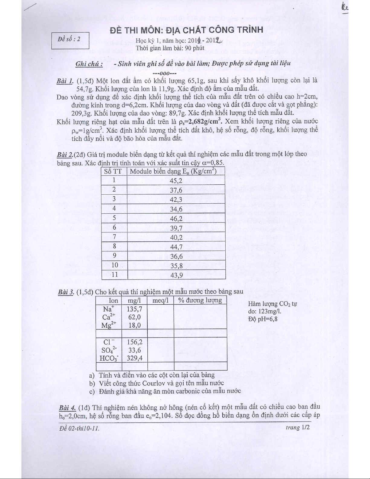 Đề thi môn Địa chất công trình - Đề số 2